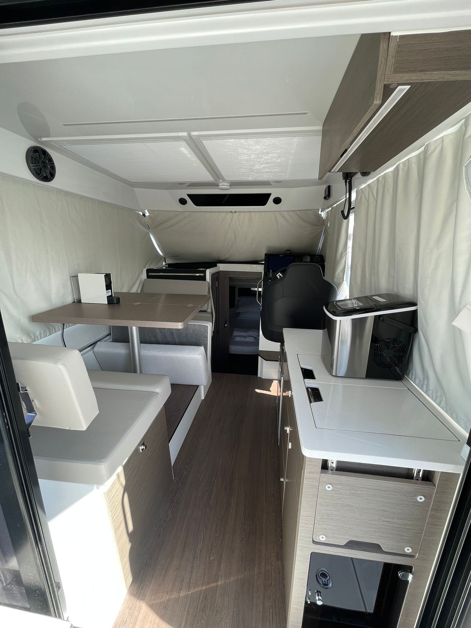 | Inside | Gasherd mit Backofen, Klimaanlage, Kühlschrank, Pantryausstattung, Radio mit CD, Salontisch absenkbar, Wasserkocher, WC (elektr.) |