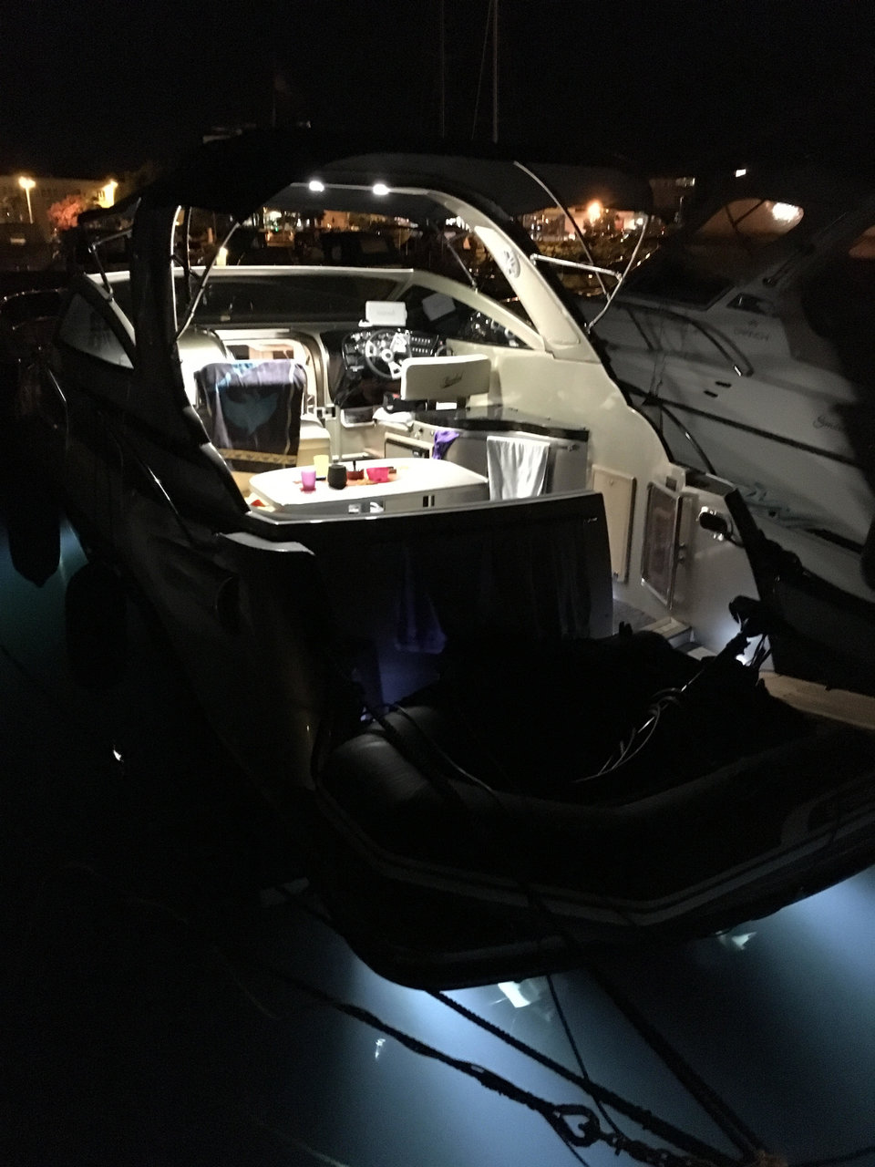 | Outside | 12 V-Anschluss, 220 V-Landanschluss, Badeleiter, Badeplattform, Cockpitdusche, Cockpitlautsprecher, Cockpittisch, Deckbeleuchtung, Deckpolster, elektr. Ankerwinsch, Gangway, Jambo Anker, Solaranlage, Unterwasserbeleuchtung |