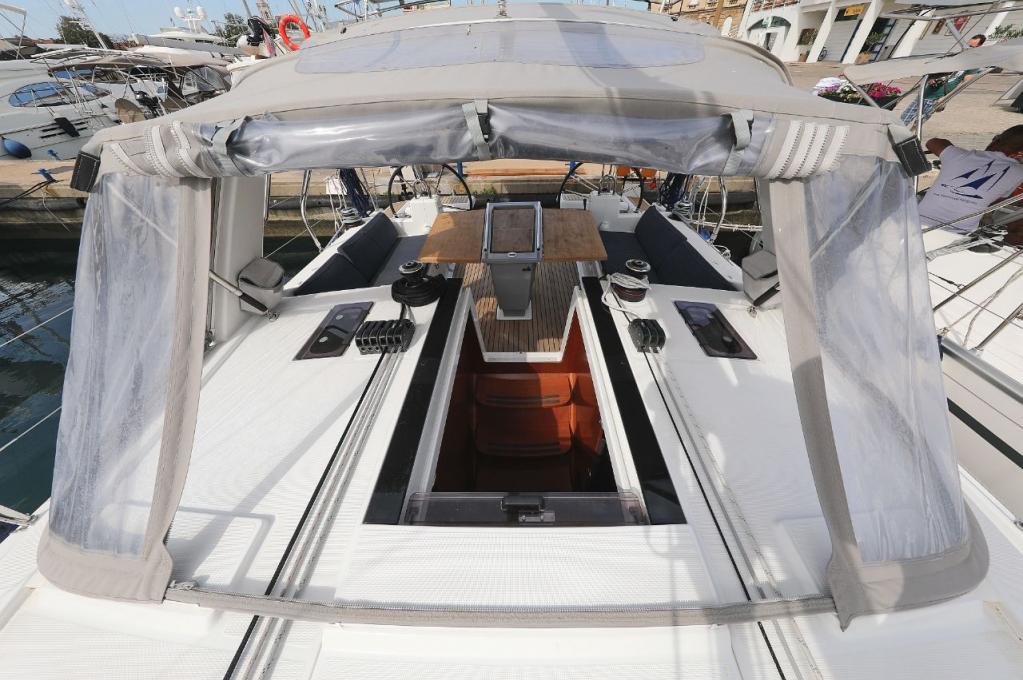 | Outside | 220 V-Landanschluss, Anker mit Kette und Seil, Ankerwinsch, Badeplattform, Biminitop, elektr. Ankerwinsch, Fender, Festmacherleinen, Solaranlage, Sprayhood, Teak im Cockpit, Windex, Winschen |