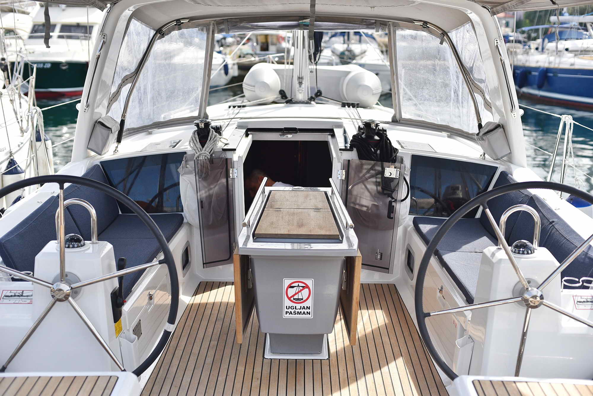 | Outside | Anker mit Kette, Biminitop, Cockpitdusche, Cockpitlautsprecher, Cockpitpolster, Cockpittisch (klappbar), Deckbürste, elektr. Ankerwinsch, Fender, Kunststoff-Eimer (Pütz), Solaranlage, Sprayhood |