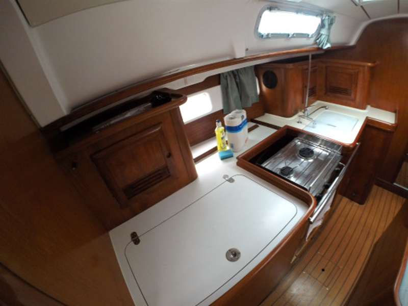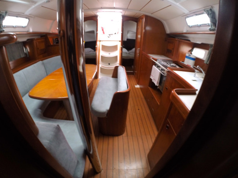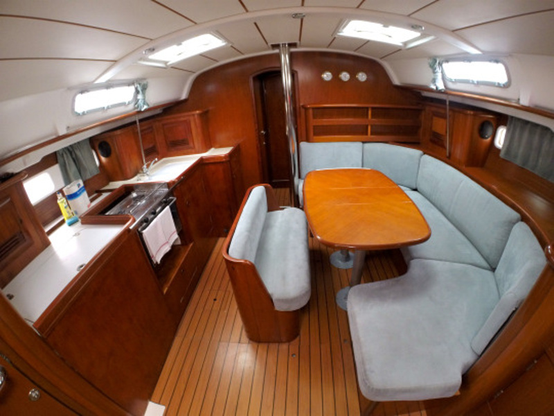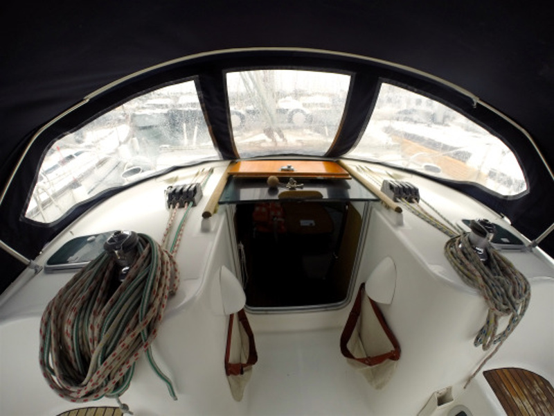 | Outside | Baro-/Hygro-/Thermometer, Biminitop, Cockpitdusche, Cockpittisch, elektr. Ankerwinsch, Festmacherleinen, Sprayhood, Teak im Cockpit |
