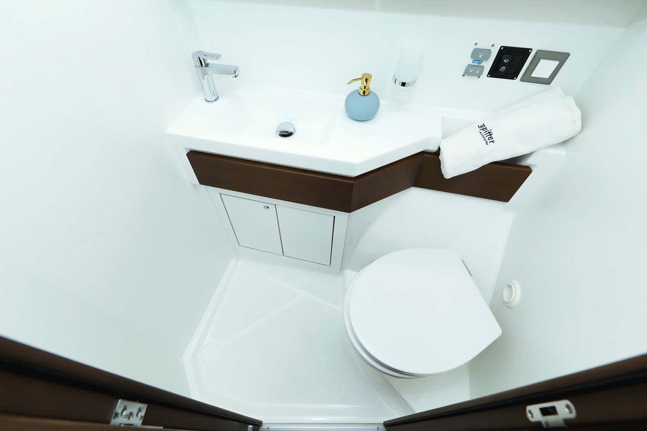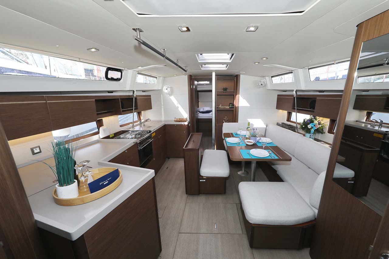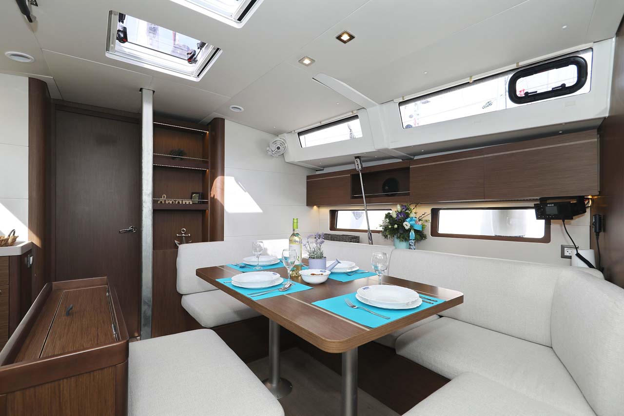 | Inside | Borduhr, Heizung, Inverter 12V/220V, Kühlschrank, Ladegerät, Luftpumpe für Beiboot, Pantryausstattung, Radio, Salontisch absenkbar, USB Steckdose, Ventilatoren in Kabinen, Warmwasser, WC (elektr.) |