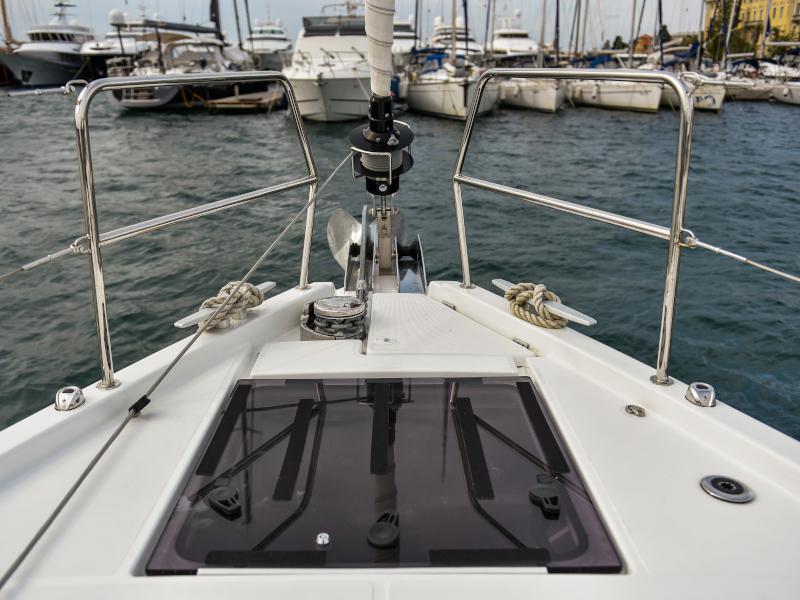 | Safety | Automatikwesten, Autopilot, Bootsmannstuhl, Bordapotheke, Bordwerkzeug, Bugstrahlruder, Feststoffschwimmwesten, Feuerlöscher, Handbilgepumpe, Nebelhorn, Notsignale, Radarreflektor, Rettungsinsel, Sicherheitsgurt, UKW-Funk |