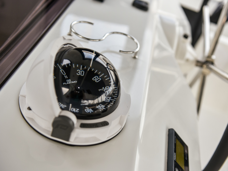 | Navigation | Fernglas, GPS mit Kartenplotter im Cockpit, Handpeilkompass, Navigationsbesteck, Seekarten, Steuerkompass, Tridata (Log, Echolot, Windm.) |