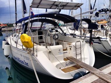 | Outside | Baro-/Hygro-/Thermometer, Biminitop, Cockpitdusche, Cockpittisch, elektr. Ankerwinsch, Festmacherleinen, Solaranlage, Sprayhood, Teak im Cockpit |
