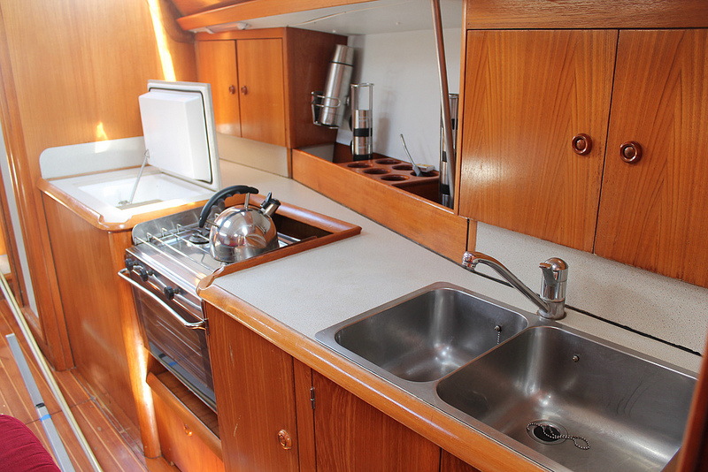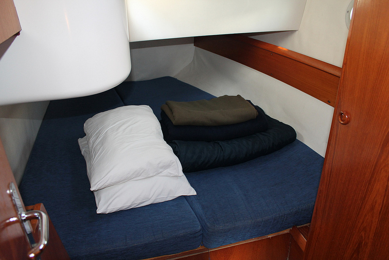 | Navigation | Echolot, GPS im Cockpit, GPS mit Kartenplotter, Hafenhandbücher, Seekarten, Tridata (Log, Echolot, Windm.) |