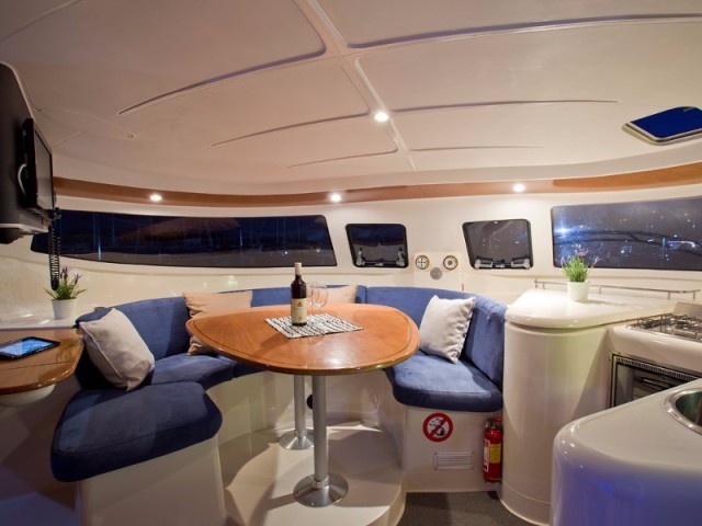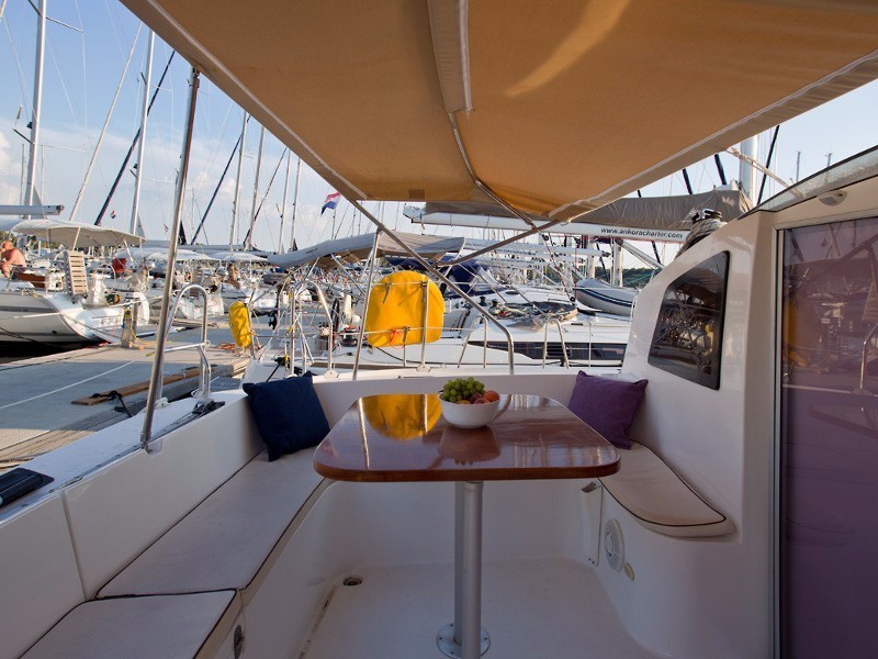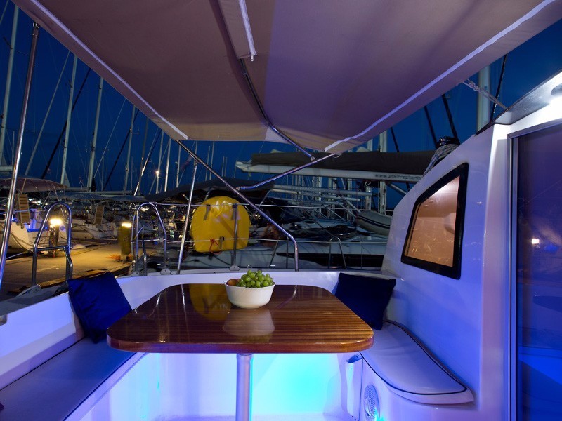 | Outside | Badeleiter, Biminitop, Cockpitlautsprecher, Cockpitpolster, Cockpittisch, Davits, elektr. Ankerwinsch, Selbstholende Winschen |