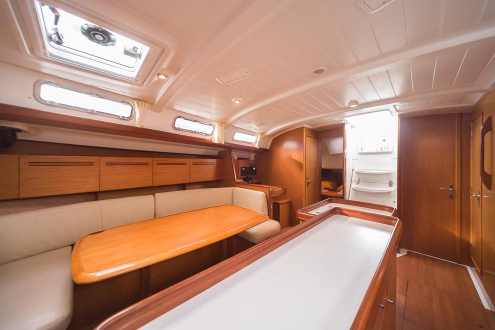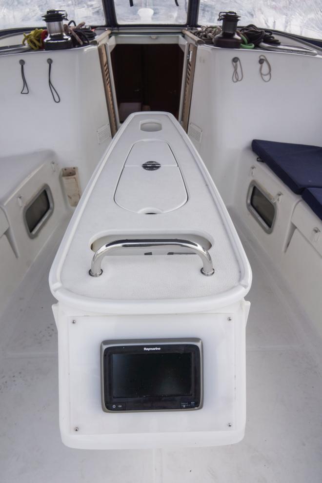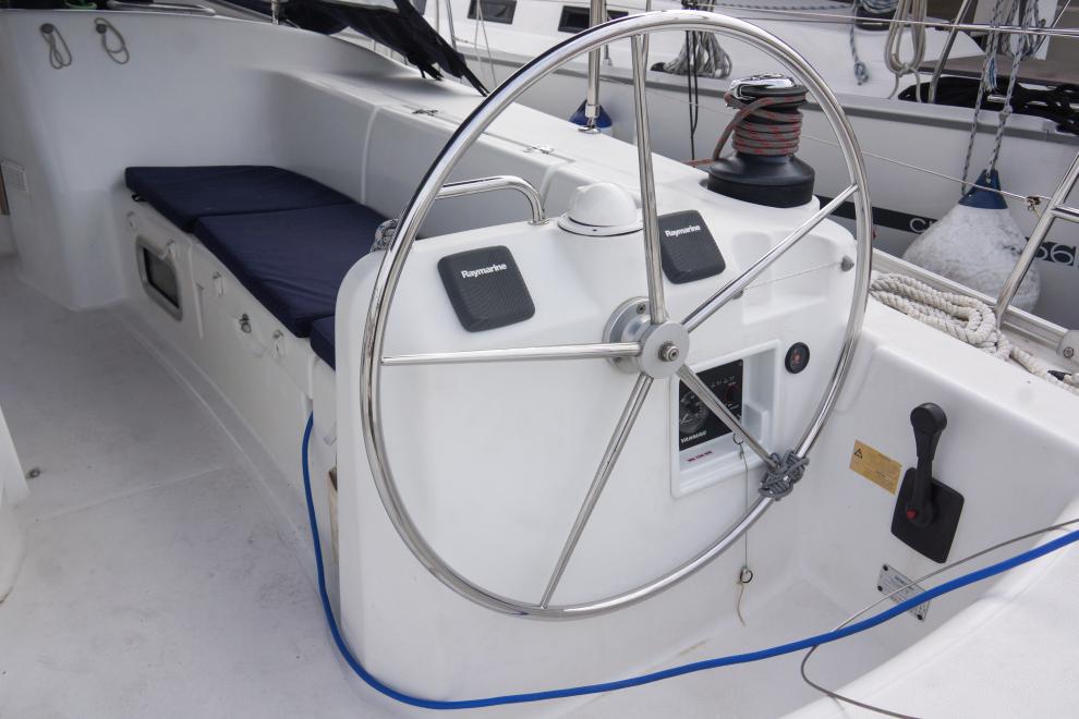 | Outside | 12 V-Anschluss, Badeleiter, Biminitop, Cockpitdusche, Cockpitlautsprecher, Cockpitpolster, Cockpittisch, elektr. Ankerwinsch, Gangway, Sprayhood |