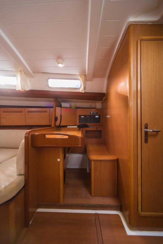 | Navigation | Echolot, GPS mit Kartenplotter, Hafenhandbücher, Navigationsbesteck, Seekarten, Sumlog, Windmesser |
