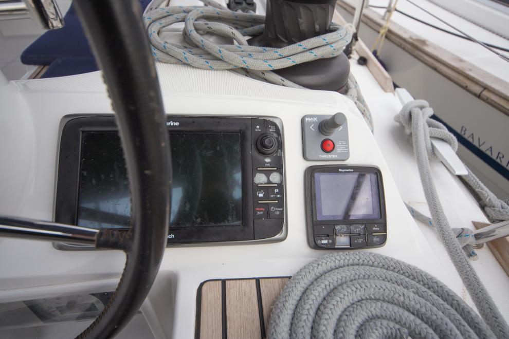 | Navigation | Echolot, GPS mit Kartenplotter im Cockpit, Hafenhandbücher, Navigationsbesteck, Seekarten, Sumlog, Windmesser |