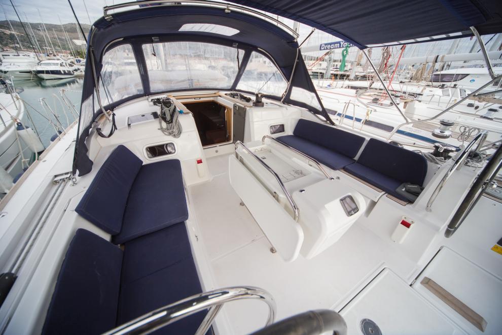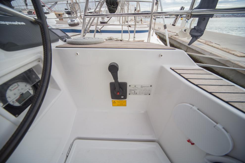 | Outside | 220 V-Landanschluss, Badeleiter, Biminitop, Cockpitdusche, Cockpitlautsprecher, Cockpitpolster, Cockpittisch, elektr. Ankerwinsch, Gangway, Sprayhood |
