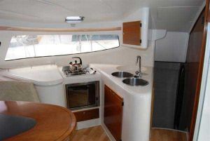 | Outside | 220 V-Landanschluss, Ankerwinsch, Badeleiter, Biminitop, Cockpittisch, elektr. Ankerwinsch, Gangway, Heckdusche, Windex |