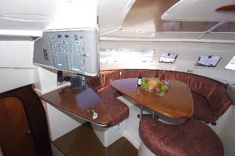 | Outside | 220 V-Landanschluss, Anker mit Kette, Ankerwinsch, Biminitop, Cockpitdusche, Cockpittisch, Davits, elektr. Ankerwinsch, Fender, Grill |