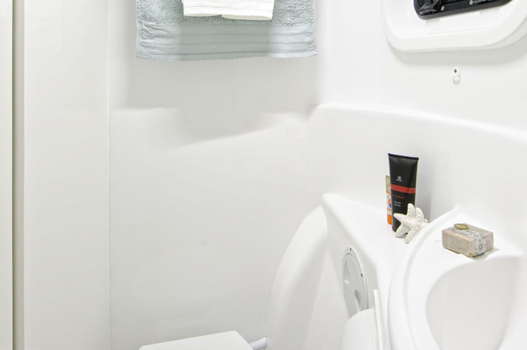 | Outside | 220 V-Landanschluss, Biminitop, Cockpitdusche, Cockpittisch, elektr. Ankerwinsch, Solaranlage |