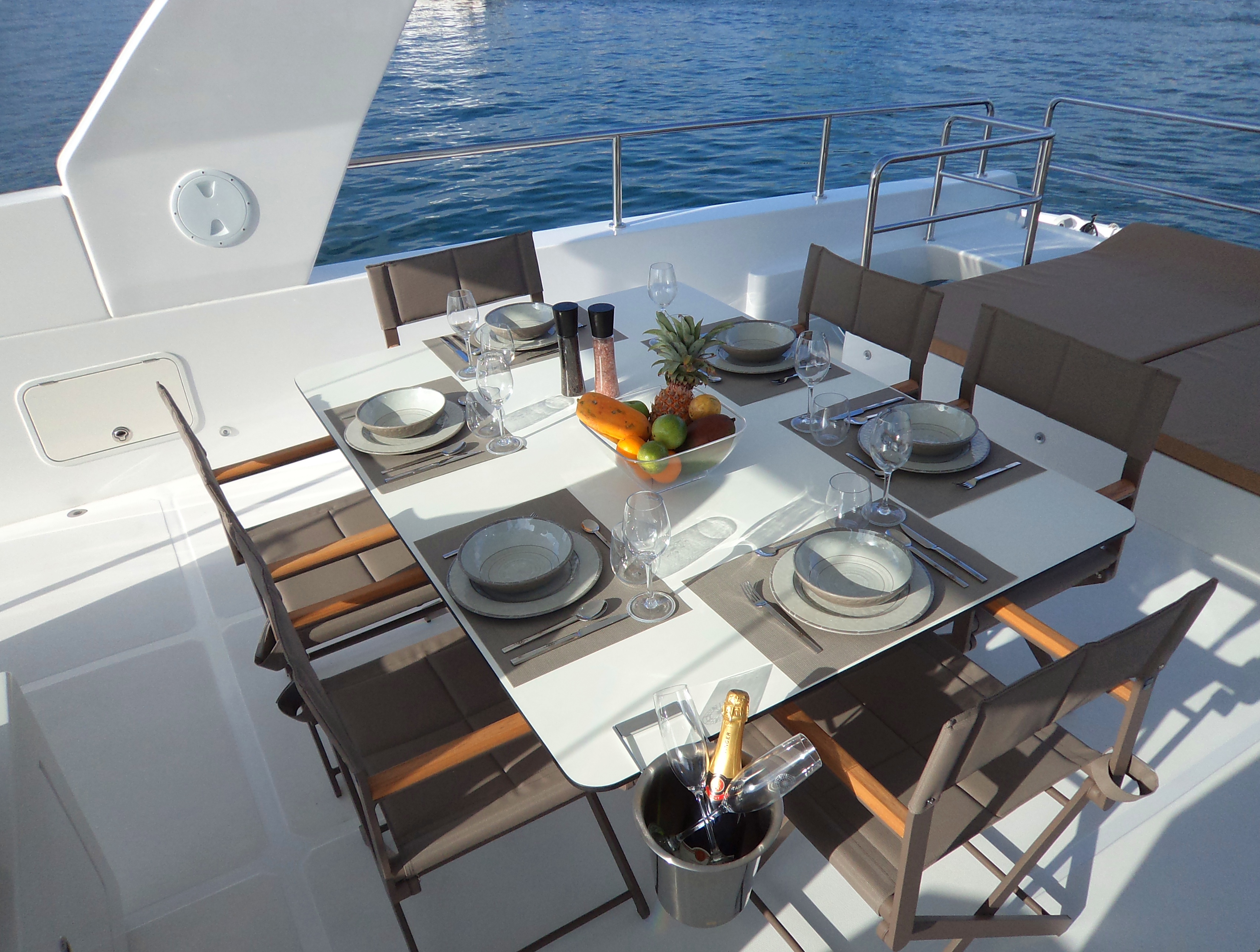 | Outside | Badeleiter, Badeplattform, Biminitop, Grill, Solaranlage, Sonnendeck, Sonnensegel |