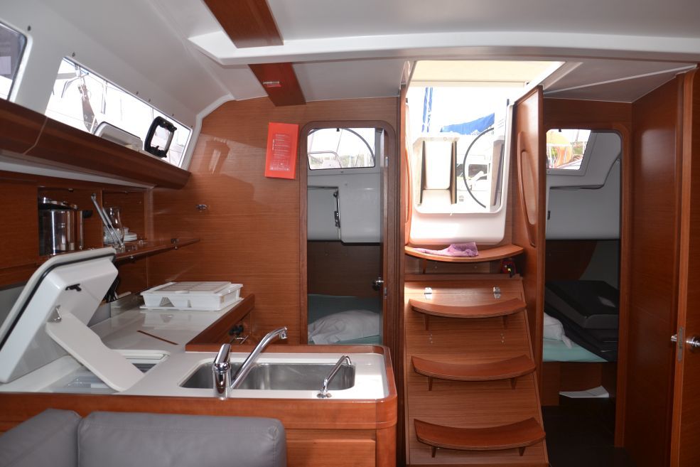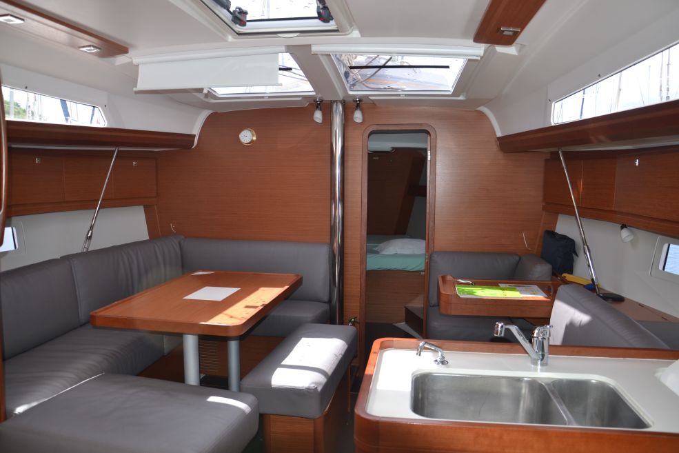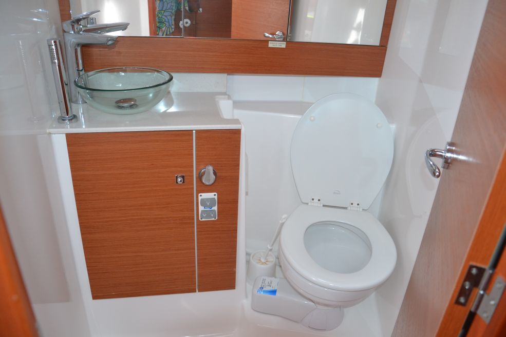 | Outside | 220 V-Landanschluss, Badeleiter, Biminitop, Cockpitdusche, Cockpitlautsprecher, Cockpitpolster, Cockpittisch, elektr. Ankerwinsch, Selbstholende Winschen, Sprayhood |