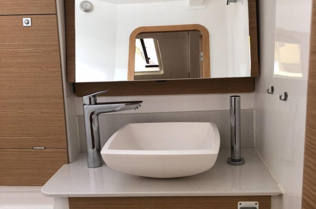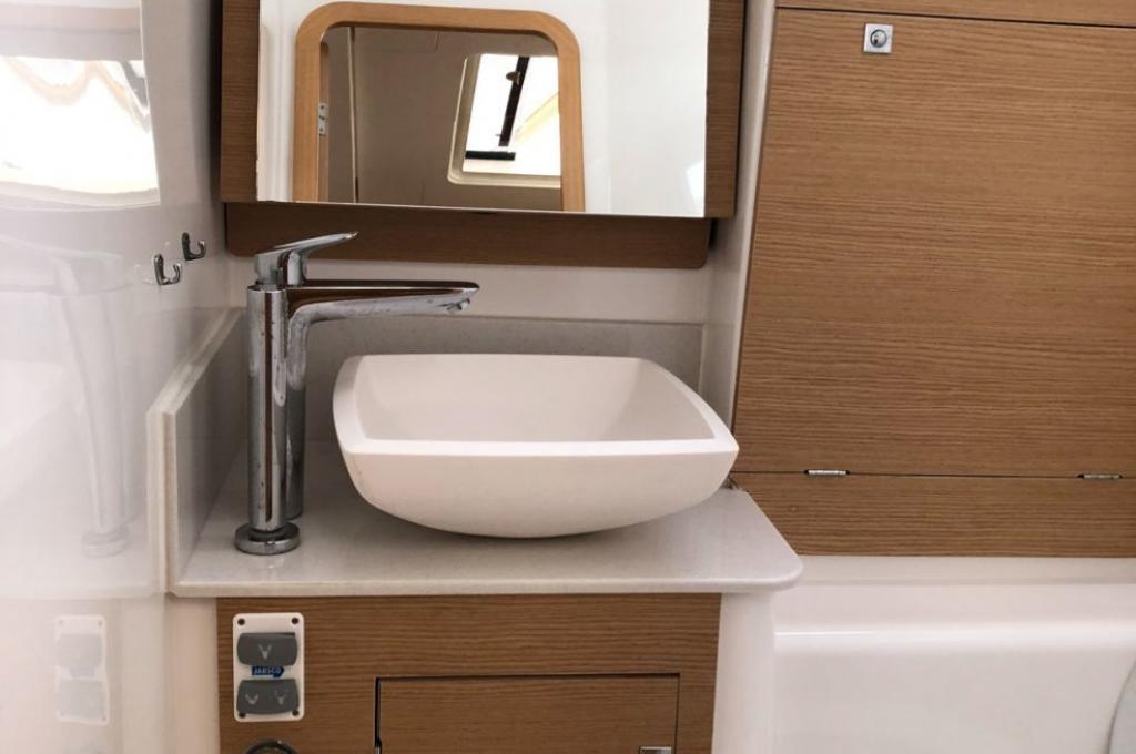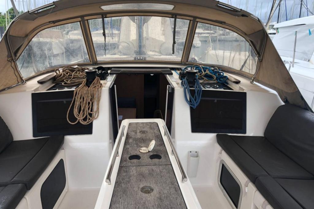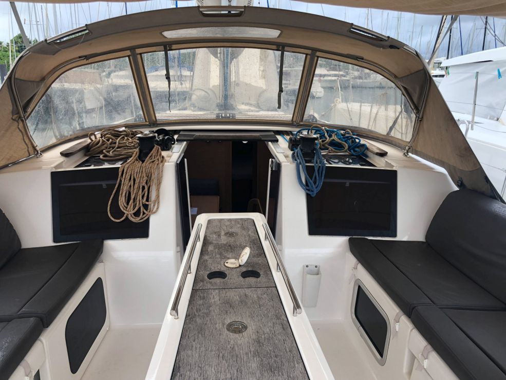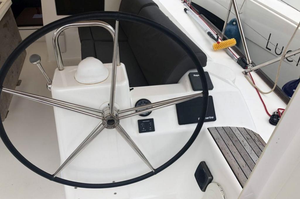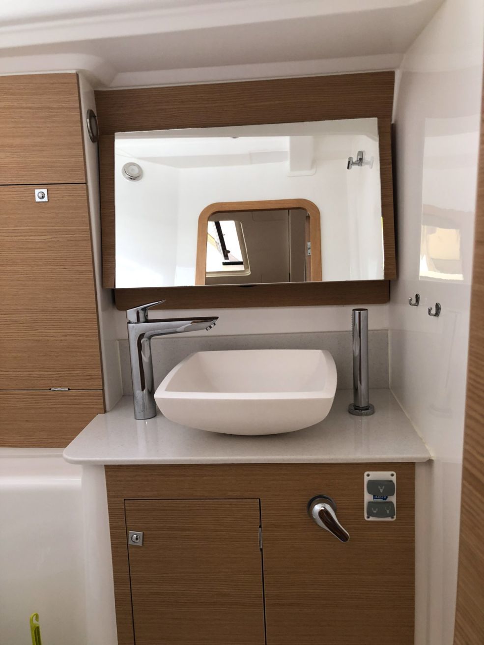 | Outside | 220 V-Landanschluss, Badeleiter, Biminitop, Cockpitdusche, Cockpitlautsprecher, Cockpitpolster, Cockpittisch, elektr. Ankerwinsch, Selbstholende Winschen, Sprayhood |