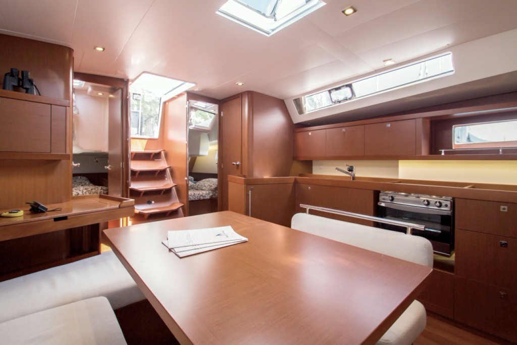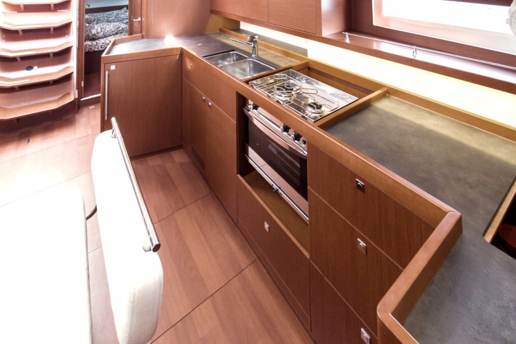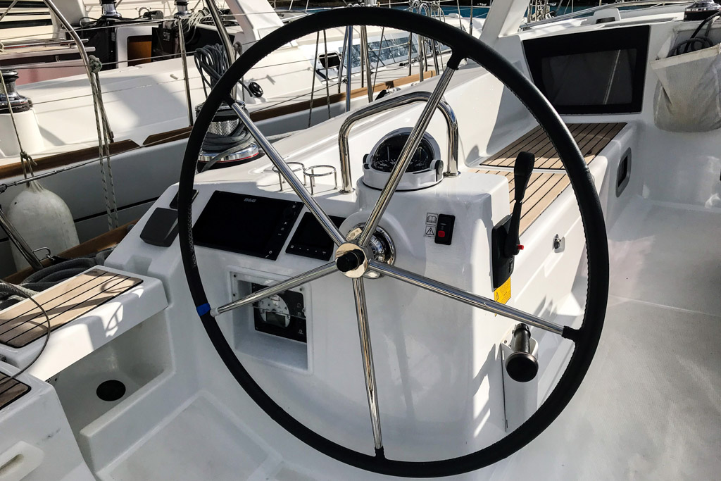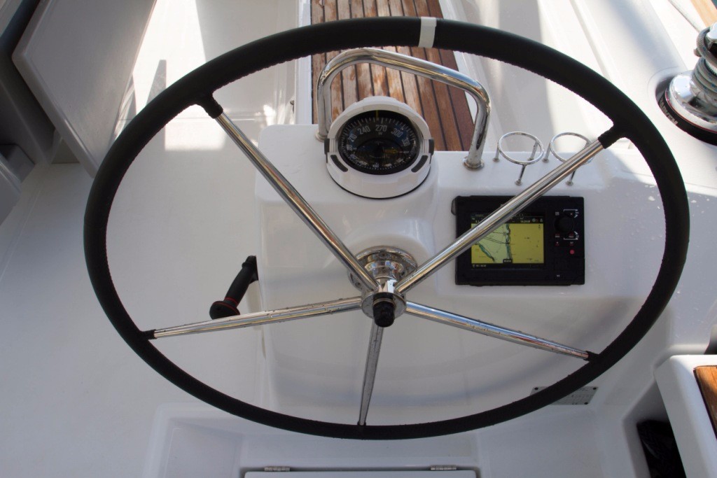 | Navigation | Echolot, Fernglas, GPS mit Kartenplotter im Cockpit, Hafenhandbücher, Multifunktionstouchscreen, Seekarten, Sumlog, Tridata (Log, Echolot, Windm.) |