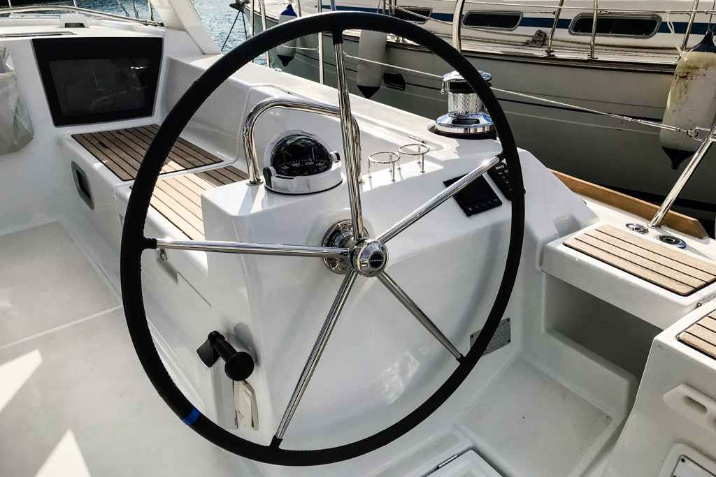 | Outside | 12 V-Anschluss, Badeleiter, Badeplattform, Biminitop, Cockpitdusche, Cockpitlautsprecher, Cockpitpolster, Cockpittisch, elektr. Ankerwinsch, Fender, Festmacherleinen, Selbstholende Winschen, Sprayhood, Windex |