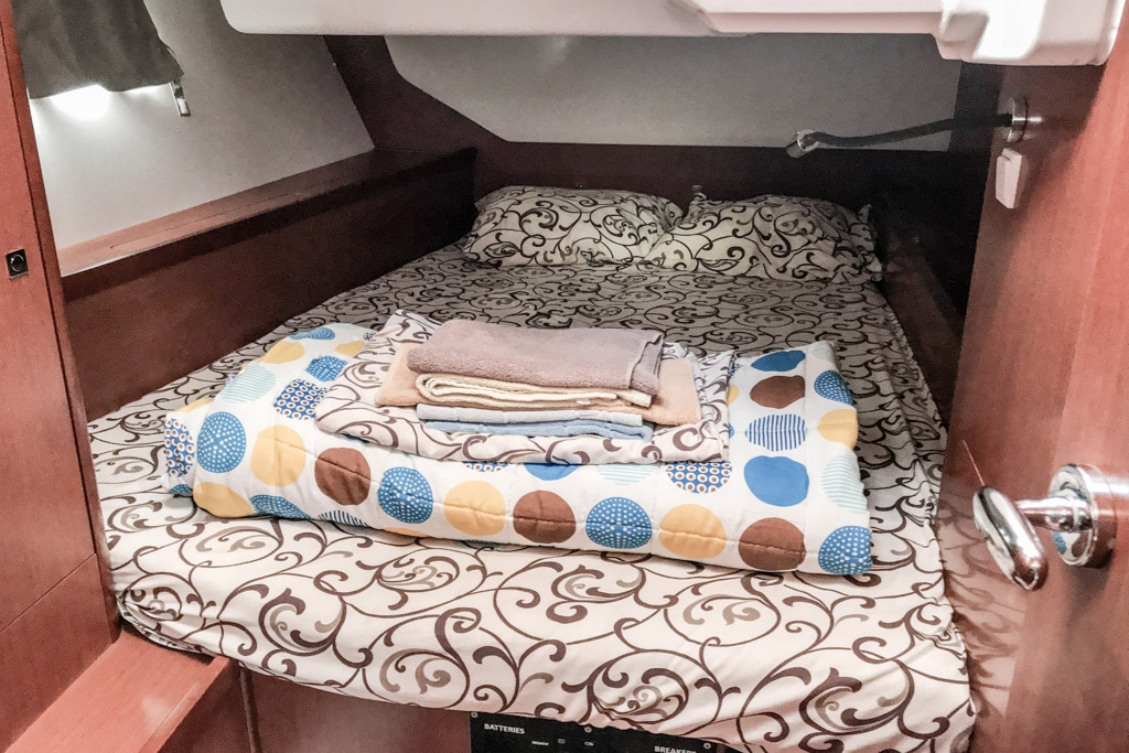 | Safety | Autopilot, Bordapotheke, Bugstrahlruder, Epirb, Feststoffschwimmwesten, Feuerlöscher, Handfunkgerät, Rettungsinsel, UKW-Funk mit AIS |