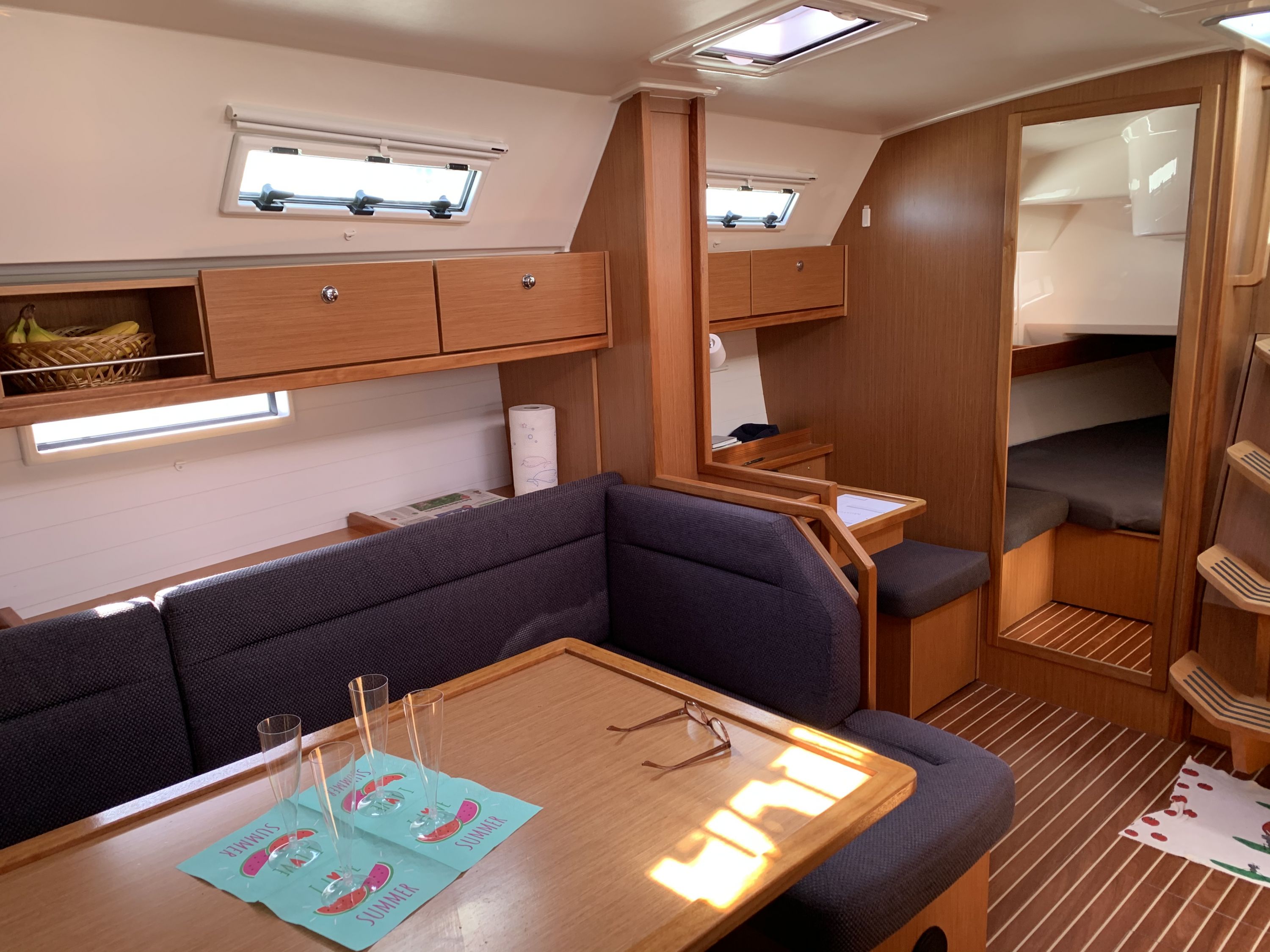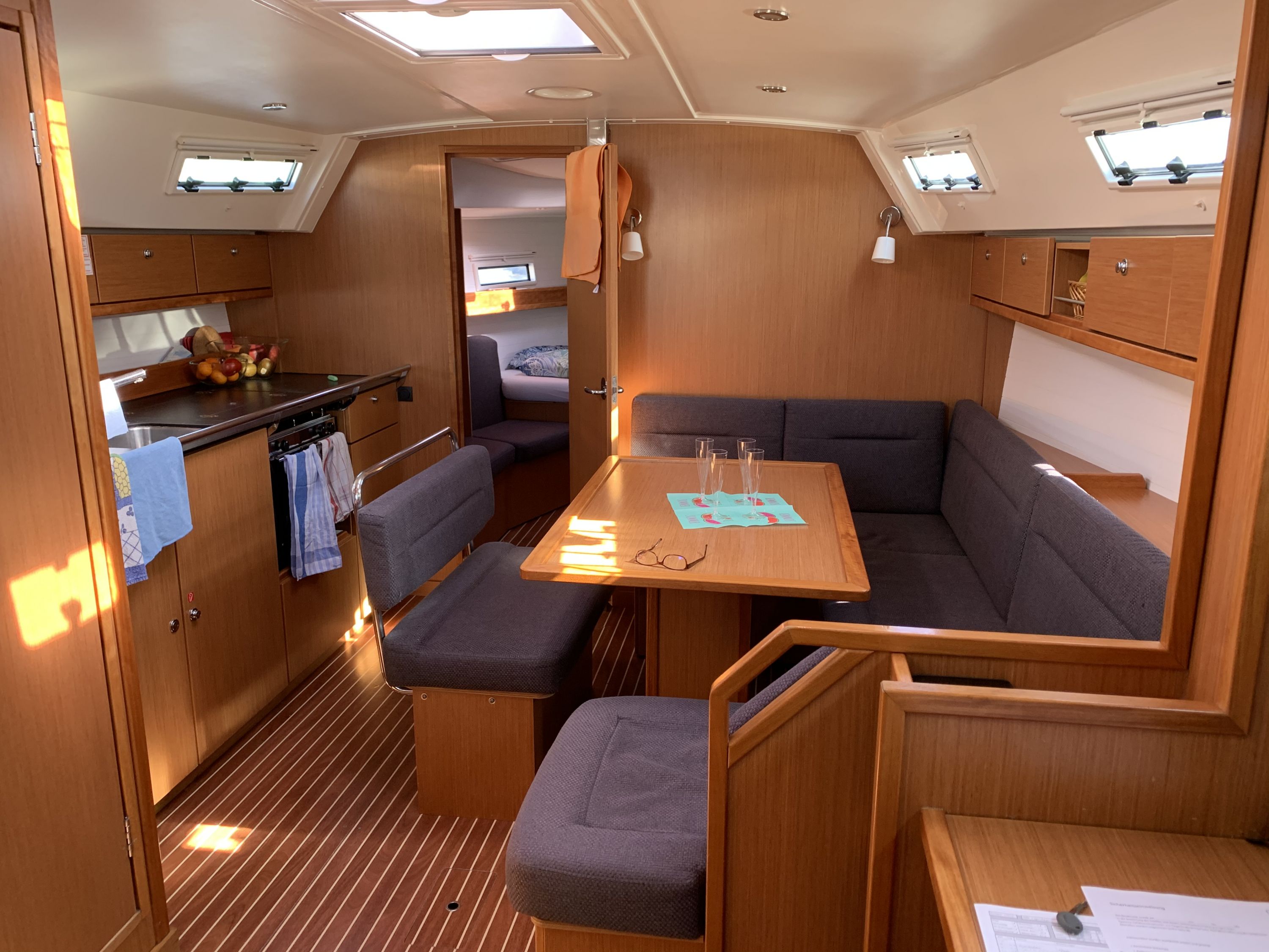 | Outside | 220 V-Landanschluss, Badeleiter, Biminitop, Cockpitdusche, Cockpitlautsprecher, Cockpittisch, elektr. Ankerwinsch, Sprayhood, Windex |