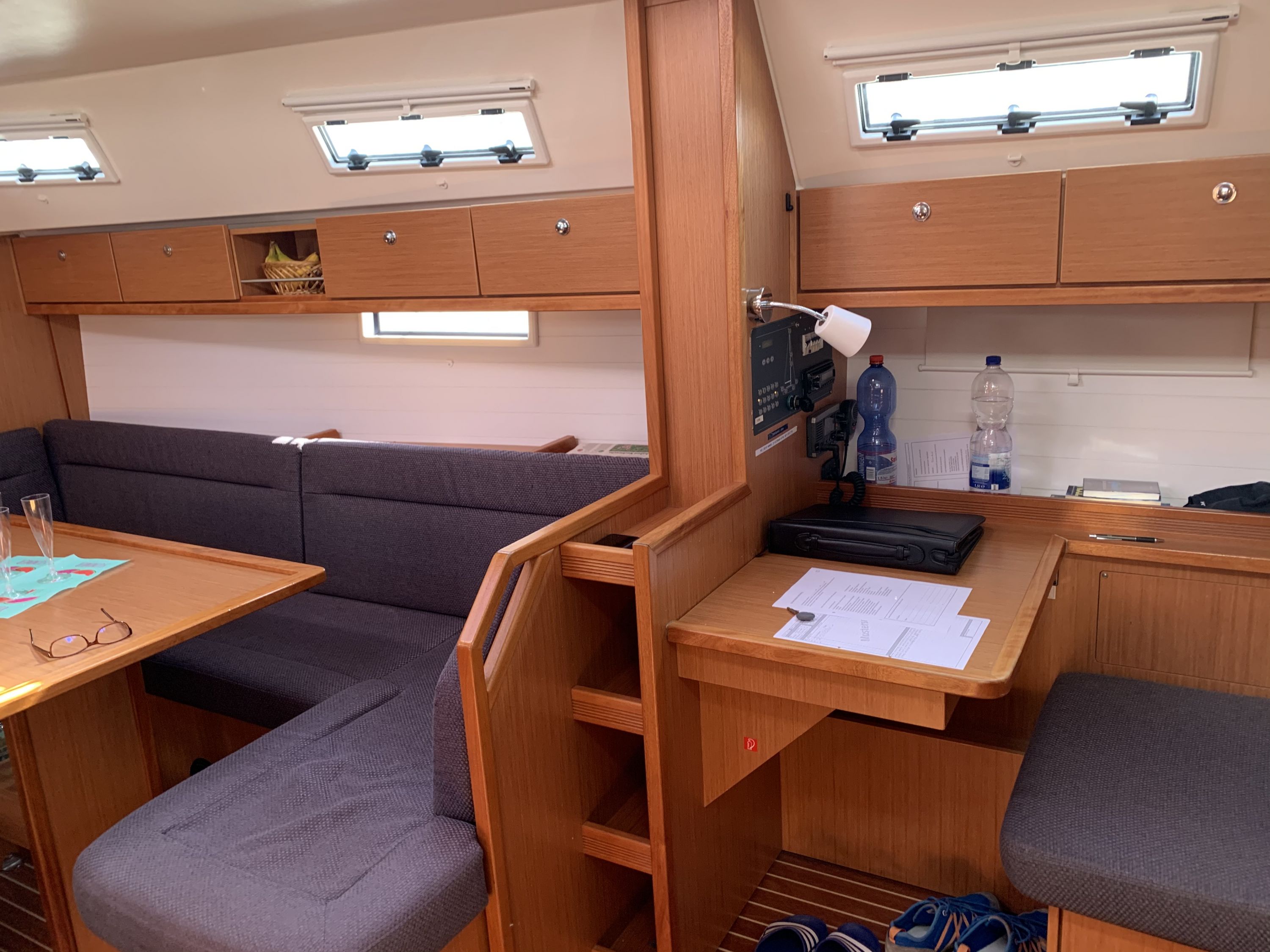 | Navigation | Barometer, Echolot, Fernglas, GPS mit Farbkartenplotter, GPS mit Kartenplotter im Cockpit, Hafenhandbücher, Handpeilkompass, Kompass, Seekarten, Sumlog, Windmesser |