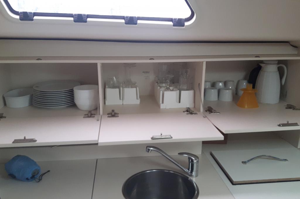 | Safety | Automatikwesten, Bootsmannstuhl, Bordapotheke, Bordwerkzeug, elektr. Bilgepumpe, GMDSS, Lifebelts, Navigationslichter, Notpinne, Notsignale, Rettungsinsel, Rettungskragen, Sicherheitsgurt, Taschenlampe, UKW-Funk |