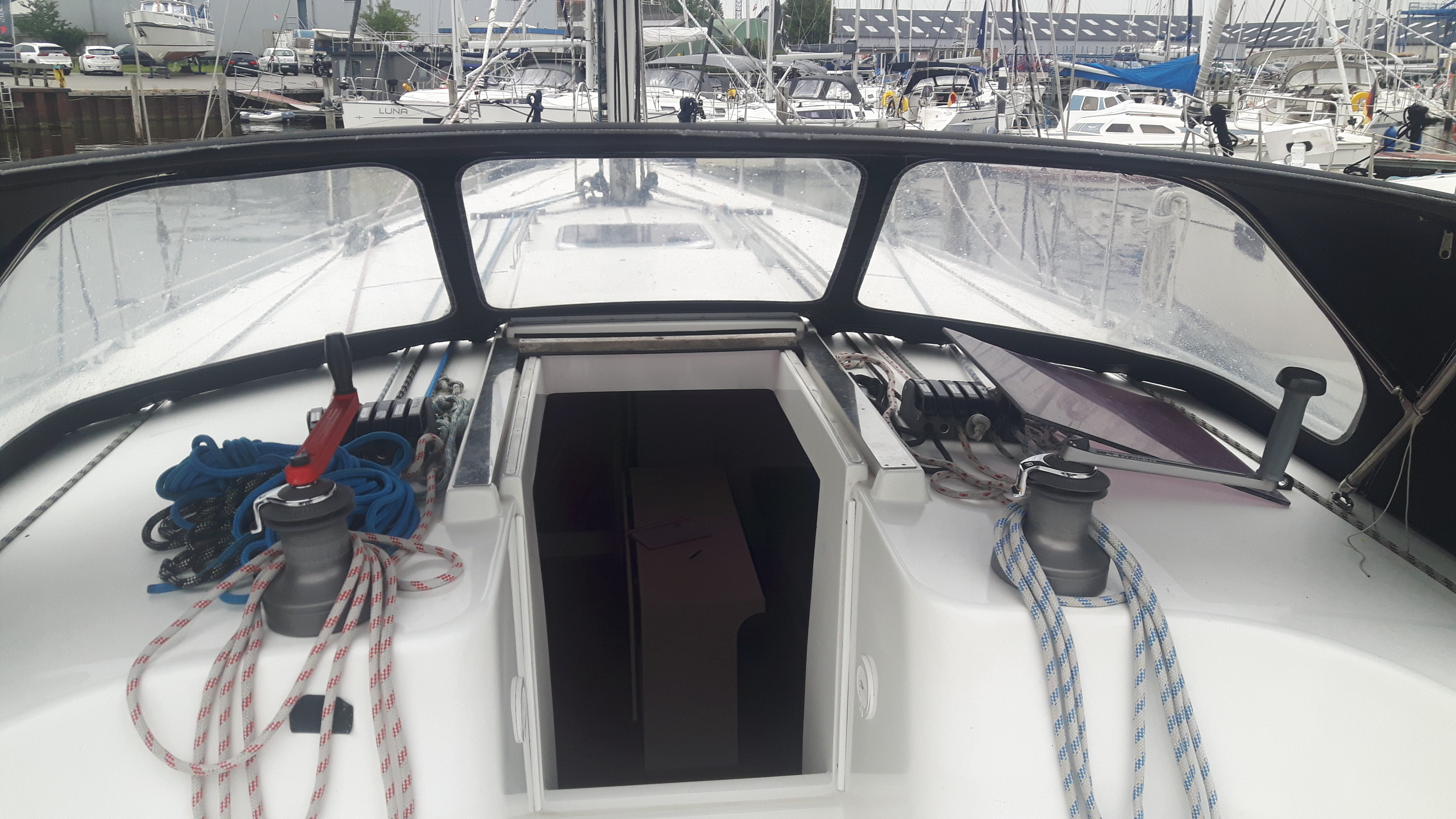 | Outside | Ankerwinsch, Badeleiter, Cockpitdusche, Cockpittisch, Sprayhood, Windex |