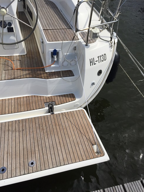 | Outside | 220 V-Landanschluss, Anker mit Bleileine, Badeplattform, Cockpitlautsprecher, Cockpittisch, Heckdusche, Sprayhood |