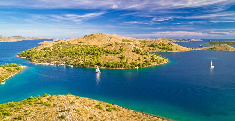 Direkt vor der Haustür von Šibenik liegt der Šibenik-Archipel. Mit sieben größeren Inseln sowie vielen kleinen liegen auch in der Bucht von Šibenik lohnenswerte Ausflugsziele, die jedoch weniger bekannt sind. Dabei finden sich hier viele schöne Buchten zum Baden und Sonnen sowie Konobas und Restaurants zum Stärken. Im Archipel gibt es neben Molen und Stegen auch mehrere Bojenfelder. Je weiter man sich vom Festland entfernt, desto weniger besiedelt sind die Inseln. In den kleinen charmanten Ortschaften auf Prvić, Šepurine und Prvićluka flaniert man durch Gassen mit schönen Steinhäusern. Die Insel Krapanj ist bekannt durch eine lange Tradition des Tauchens nach Korallen und Schwämmen. Auch ein Kloster befindet sich auf der Insel, in dem es Ausstellungen zur Geschichte des Lebens und Alltags auf Krapanj gibt. Zlarin, Kakan und Kaprije punkten mit schönen Buchten und leckeren Konobas. Žirje ist die größte und vom Festland entfernteste Insel. Wer Ruhe und Entspannung sucht, ist hier richtig. So bietet die Bucht Vela Stupica Schutz und einen schönen Platz zum Baden. Eine Festung aus byzantinischer Zeit ist ein schönes Ausflugsziel mit Ausblick. Von hier aus kann es auch weitergehen zu den Kornaten, die nicht weit nordwestlich beginnen. Hier sollte vorher an ein Eintrittsticket gedacht werden (siehe unter Kornaten).