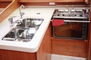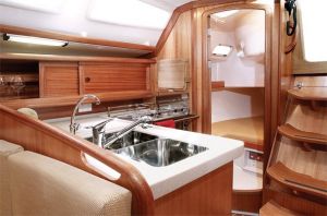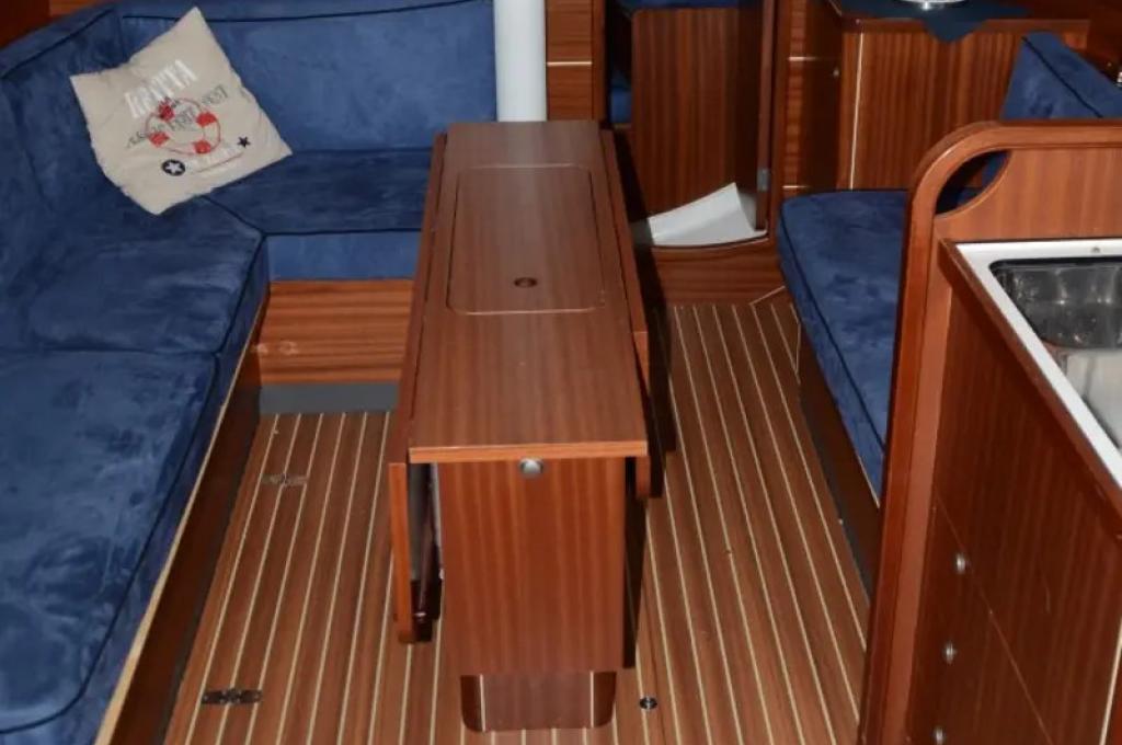 | Outside | 220 V-Landanschluss, Anker mit Kette, Bootshaken, Cockpitlautsprecher, Fender, Kuchenbude, Sprayhood |