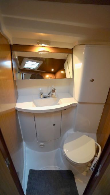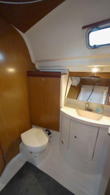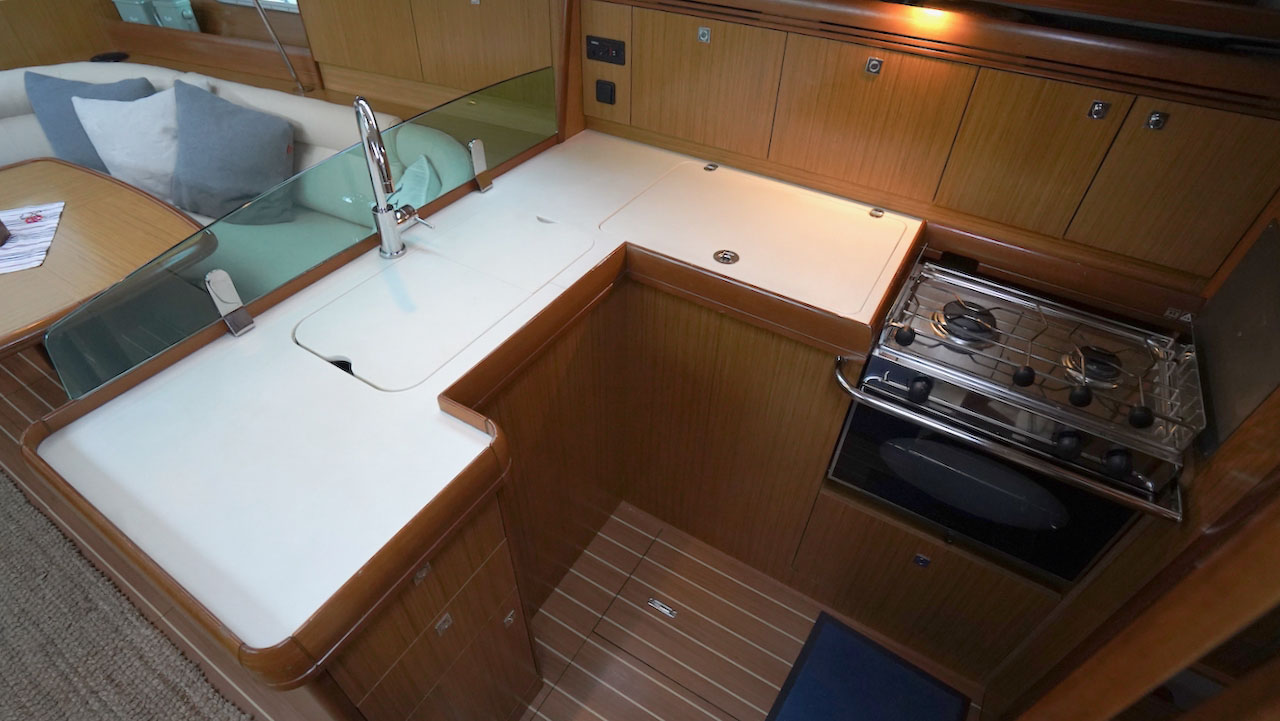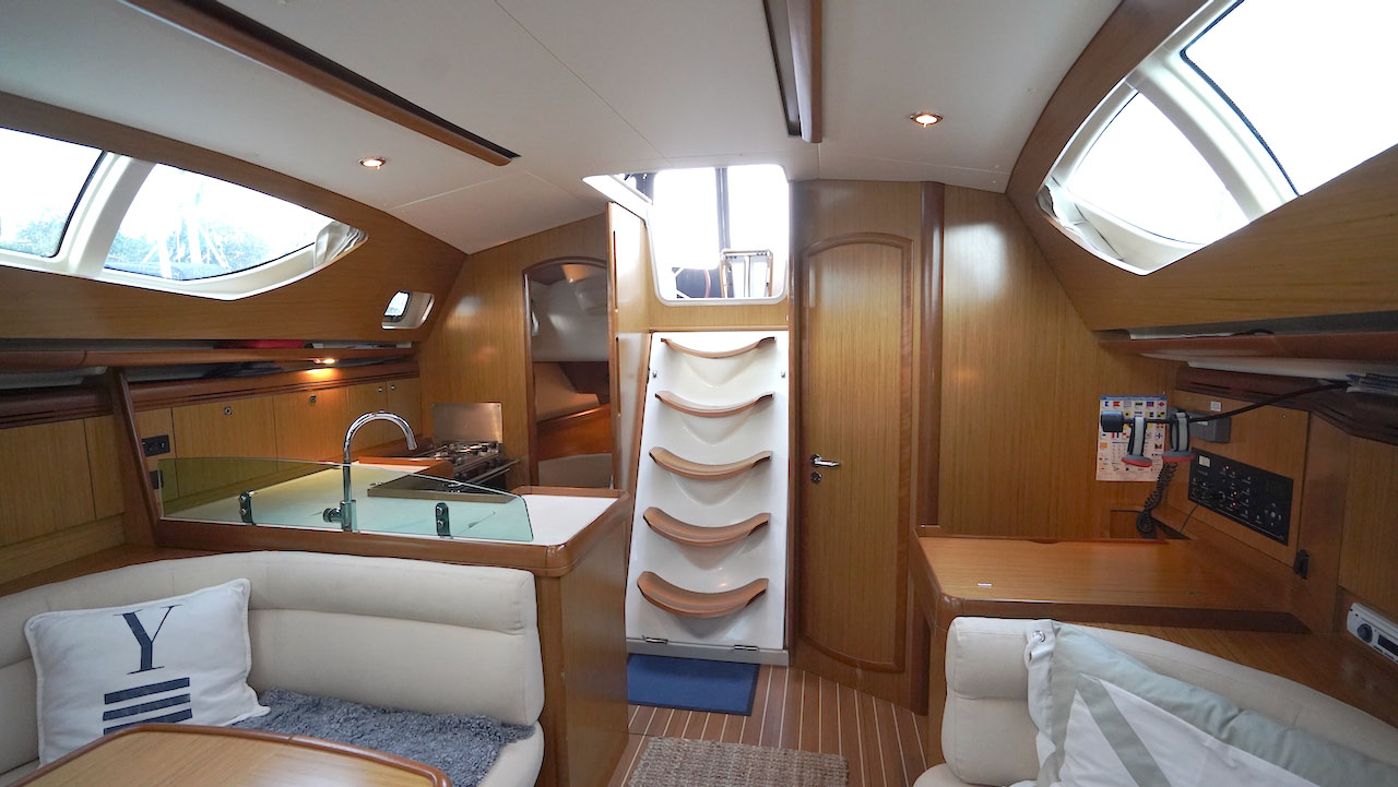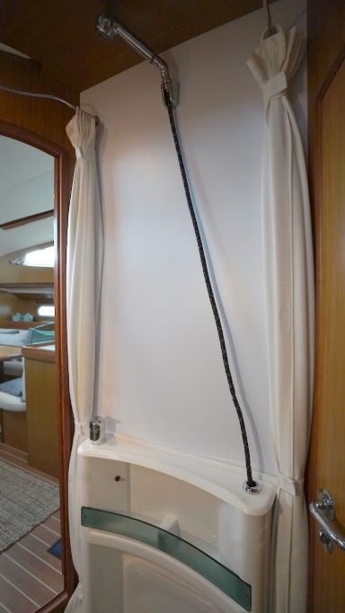 Outside 220 V-Landanschluss, Anker mit Kette, Badeleiter, Biminitop, Festmacherleinen, Teak im Cockpit, Winschen
