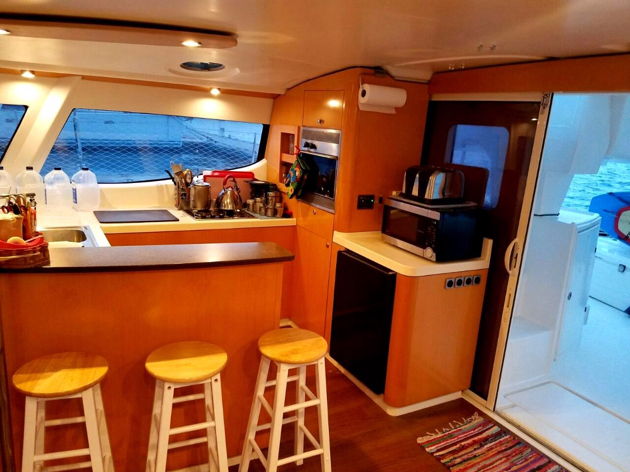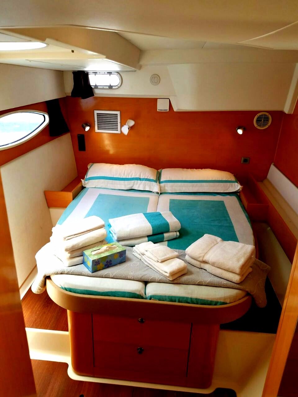 | Inside | CD-Player, Dusche, Gasherd mit Backofen, Gefrierschrank, Generator, Inverter 12V/220V, Klimaanlage (ohne Landstrombedarf), Kühlschrank, Radio, Watermaker, WC (elektr.) |