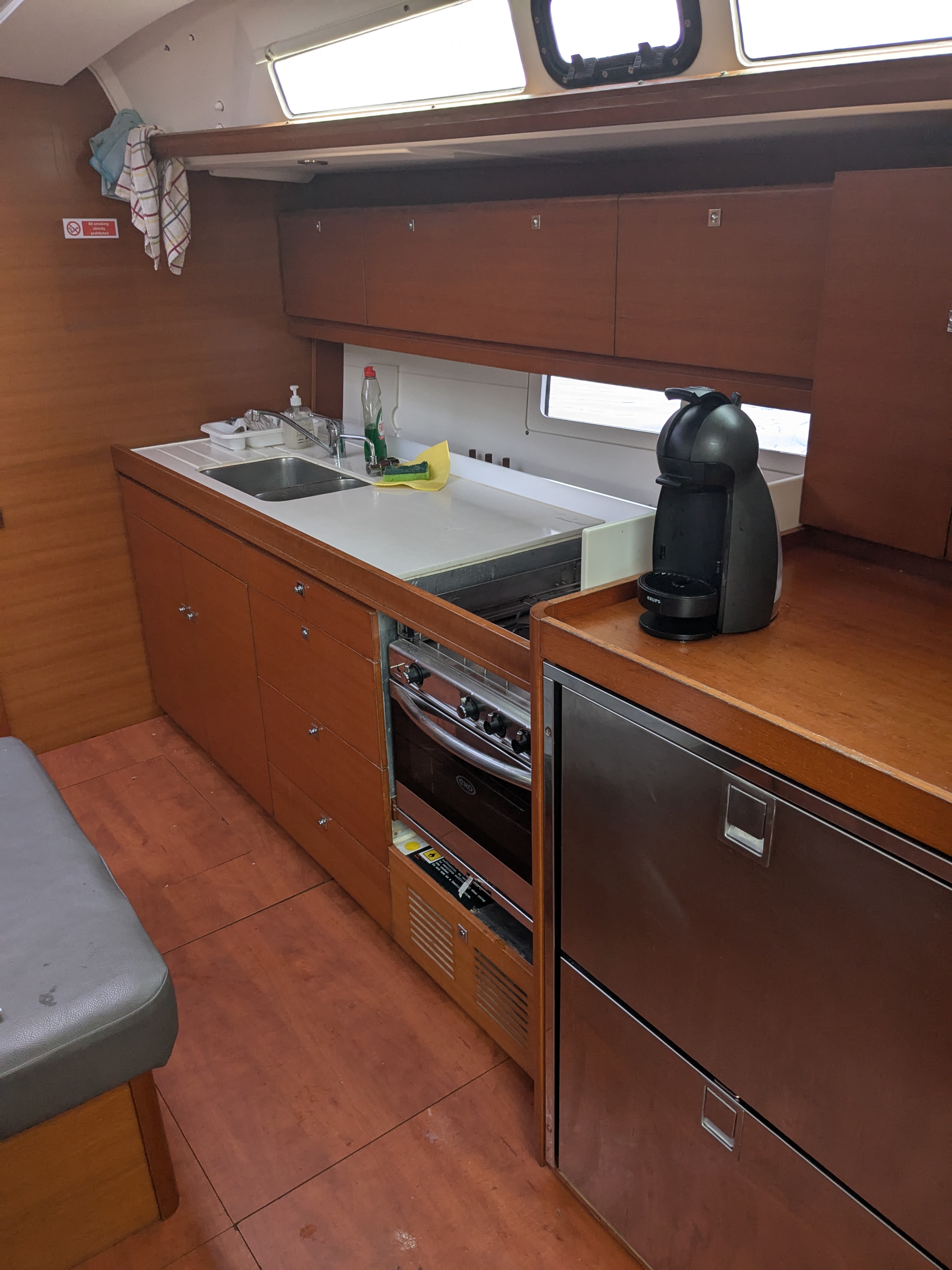 sehr freundliche Kommunikation; Yacht insgesamt für das Baujahr in einem guten Zustand; Geräte haben alle funktioniert; Kücheneinrichtung war außerordentlich gut sortiert.