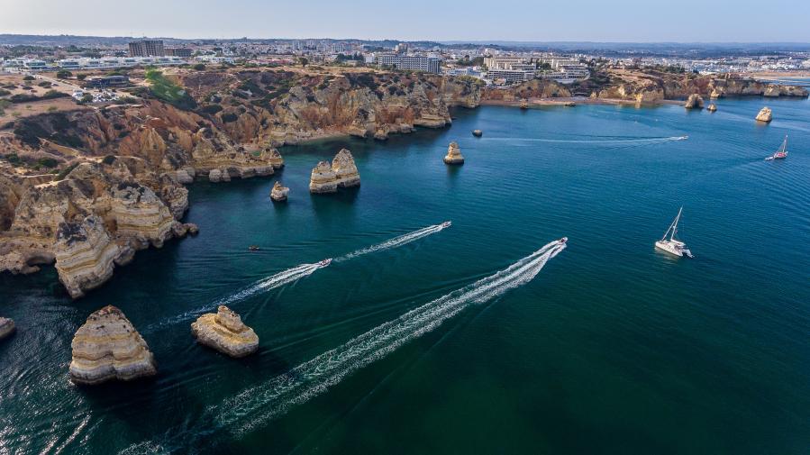 2019 feierte die Marina de Lagos ihr 25-jähriges Jubiläum. Im Laufe der Zeit hat sich die Marina von einem Startpunkt für Atlantiküberquerer in Richtung kanarische Inseln und von dort aus weiter in die Karibik und nach Mittelamerika zu einer beliebten Marina für Charterurlaube gewandelt. In den letzten Jahren wurde viel daran gesetzt, die Algarve für Freizeitsegler auszubauen. Dabei sticht Lagos besonders hervor. In der Marina gibt es alles, was für einen sorglosen Start in Richtung West oder Ost vonnöten ist. Auch das Städtchen selbst ist einen Besuch wert. Vom Hafen aus gelangt man zu Fuß an den Meia Praia, einen über 4 km langen sanft gebogenen Strandabschnitt mit goldgelbem Sand. Hinter dem Strand erhebt sich eine Düne, über welche ein Holzweg führt, und über den ganzen Abschnitt verteilt finden sich immer wieder kleine Strandbars und Cafés. Kinder können hier ausgelassen durch die Gegend tollen. Mittig wird der Strand durch den Zugang zur Lagune von Alvor unterbrochen. Dieses Naturschutzgebiet dient als geschützter Rückzugsort etlicher Pflanzen-, Vogel- und Insektenarten. Auch für Kitesurfer ist die Lagune ein beliebter Spot. Die Strände Praia Dona Ana und Praia do Camila zeigen das typische Gesicht der Algarve: feinsandiger Strand in einer kleinen Bucht umgeben von imposanten Felsformationen mit Blick auf kristallklares Wasser.