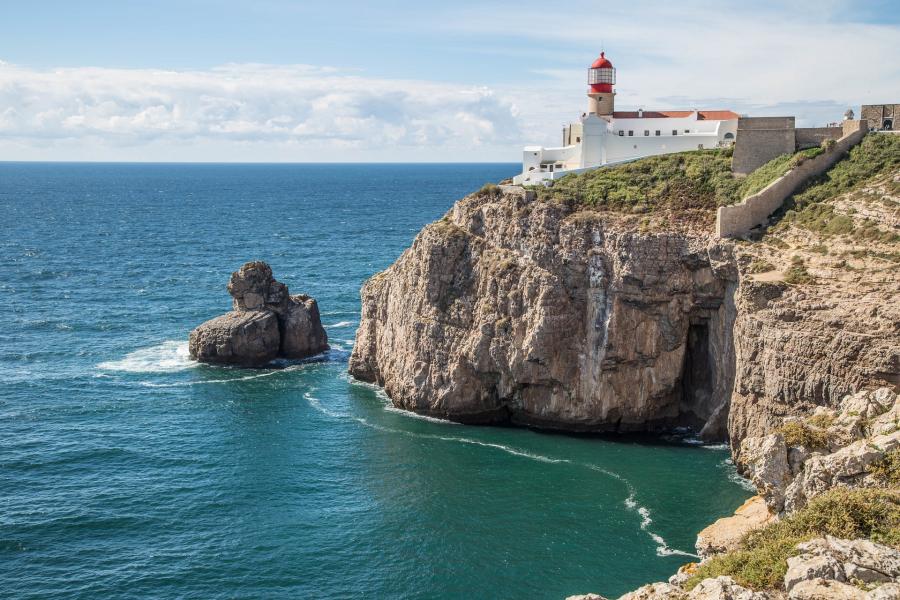 Den westlichen Teil erreichen Sie von Portimão aus, wenn Sie das Cabo de São Vicente umrunden. Auf Ihrem Weg kommen Sie vorbei an Lagos, einer lebhaften Stadt mit einer historischen Altstadt, gemütlichen Cafés und guten Restaurants. Auch das abendliche Treiben ist hier ausgeprägt und zahlreiche Pubs, Bars und Clubs laden dazu ein, einen geselligen Abend hier zu verbringen. Die Landzunge Ponta die Piedade mit ihrem Leuchtturm bietet einen tollen Rundumblick auf Land und Meer der Region, die Felsküste lädt zu einer Dinghi-Tour durch die Grotten ein. Das Cabo de São Vicente ragt mit einer bis zu 70 Meter hohen felsigen Steilküste ins Meer hinab. Obenauf thront der Leuchtturm und markiert das südlichste Ende Europas. Die Westküste der Algarve reicht bis zum Strand Praia de Odeceixe Mar und geht dann in den Parque Natural do Sudoeste Alentejano e Costa Vicentina, ein Naturschutzgebiet über, in welchem Raubvögel und Seeotter ein geschütztes zu Hause finden. Die Küstenlinie ist spärlich besiedelt, immer wieder finden sich Sandstrände, die nicht überlaufen sind, aber dennoch Verpflegung und sanitäre Einrichtungen bieten: Etwa der Praia de Monte Clérigo, der Praia da Amoreira oder der Praia de Odeceixe Mar. Am Atlantik finden an diesen Stränden auch Surfer gute Bedingungen. Die Ankerplätze sind an der Westalgarve etwas spärlich verteilt, ein zu nennender liegt in der Bucht von Arrifana.