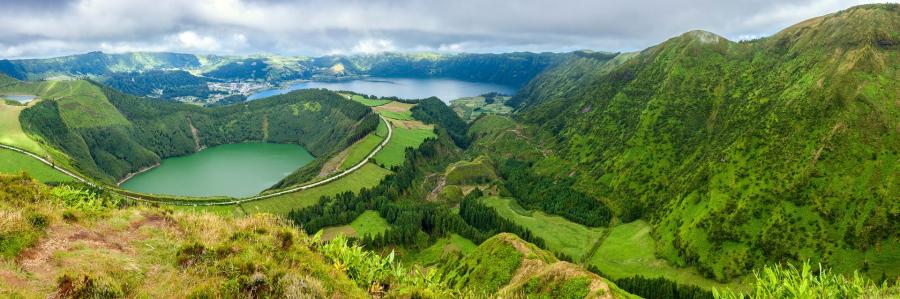 Durch Vulkanismus ist vor langer Zeit aus zwei Inseln eine geworden, und immer noch wirken die Kräfte unter Sao Miguel. In den Caldeiras, wie etwa im Furnastal oder Sete Cidades, liegen Seen und heiße Thermalquellen, in denen man auch baden kann. Wenn nicht Nebel oder Wolken um den Boca do Inferno im Sete Cidades hängen, hat man von hier einen schönen Ausblick in den Vulkankessel mit den beiden Seen, die mal grün, mal blau schimmern, genießen. Das Klima bietet auch gute Voraussetzung für ein besonderes Anbauprodukt in Europa: Tee. Die Teeplantagen, wie zum Beispiel in Cha Gorreana, können auch besichtigt werden, mit anschließender Verköstigung. Besonders Wanderer zieht es auf die grüne Insel, Routen führen zum Beispiel durch dichten Wald wie in der Caldeira Velha und auf dem Weg kommt man an Wasserfällen und heißen Quellen vorbei. Entlang der Straßen und Wege sind üppige Hortensienbüsche durchaus typisch.