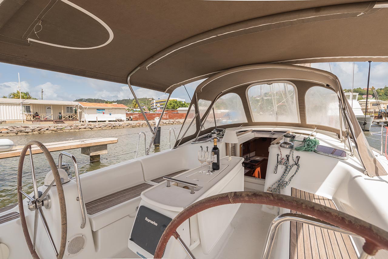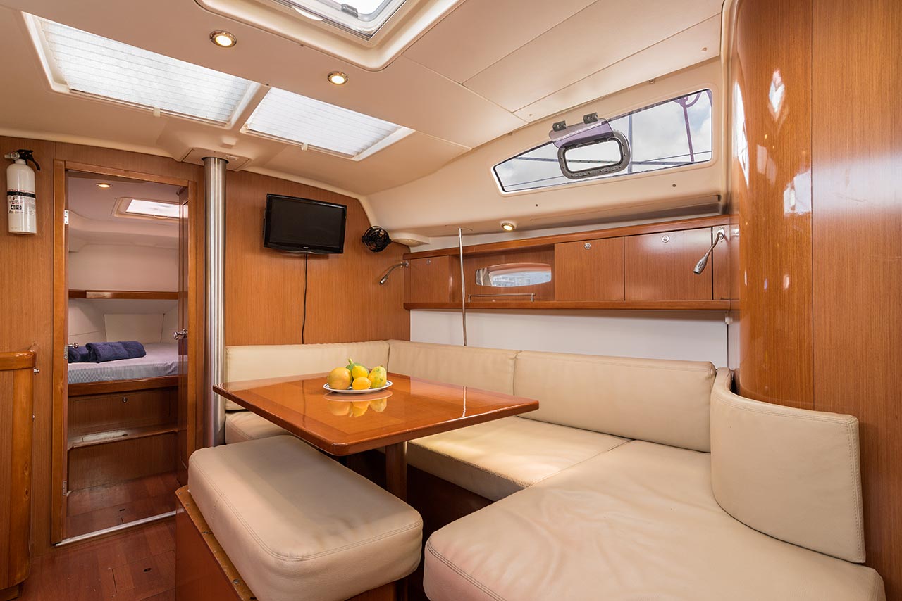 | Outside | 220 V-Landanschluss, Anker mit Kette, Biminitop, Cockpitdusche, Cockpittisch, Dieselkanister , elektr. Ankerwinsch, Fender, Solaranlage, Sprayhood |