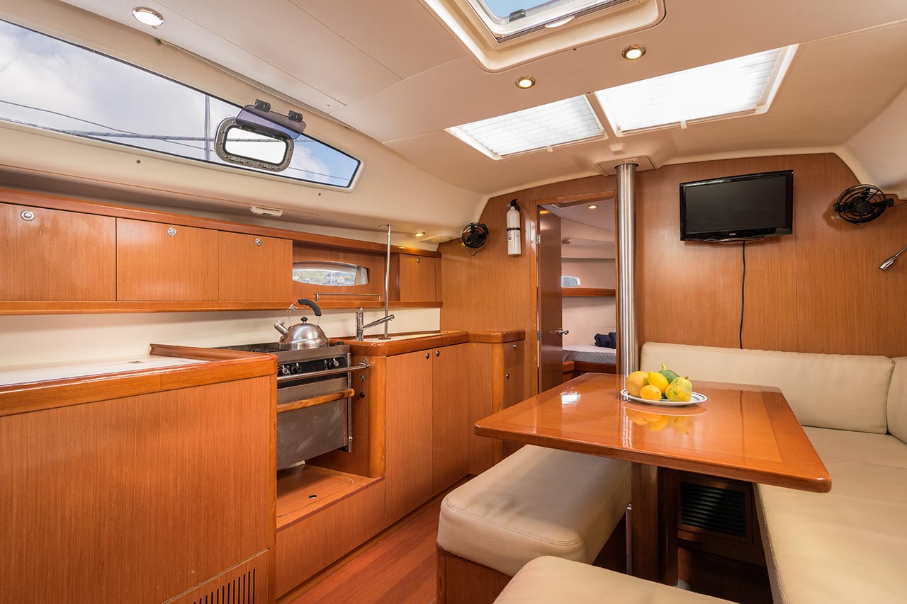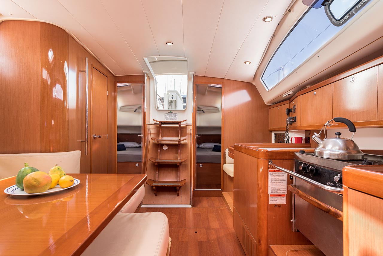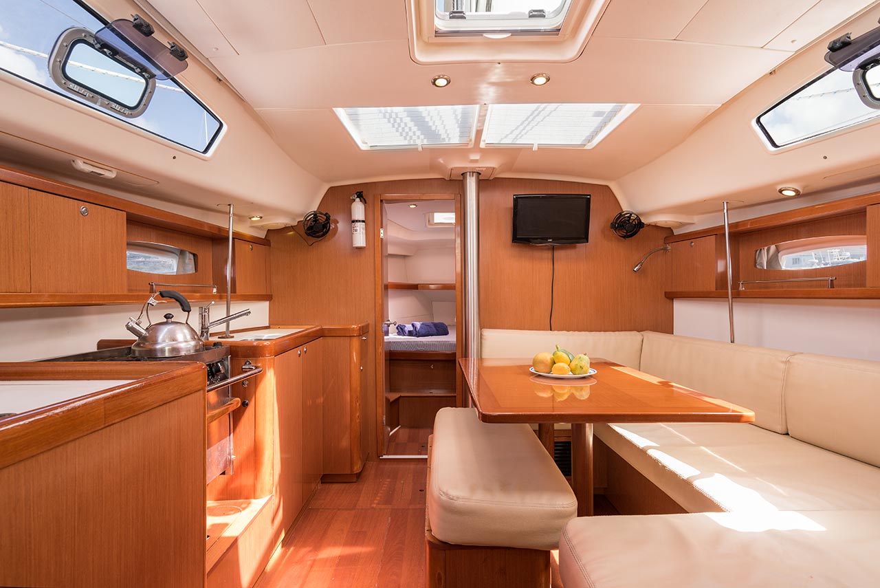 | Inside | Inverter 12V/220V, Kühlschrank, Pantryausstattung, Radio, Ventilatoren in Kabinen, Warmwasser |