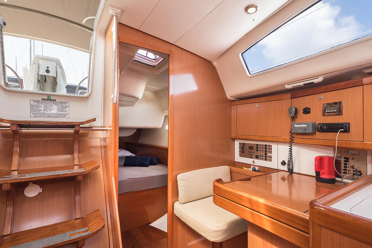 | Navigation | Fernglas, GPS mit Kartenplotter, Handpeilkompass, Seekarten, Tridata (Log, Echolot, Windm.) |