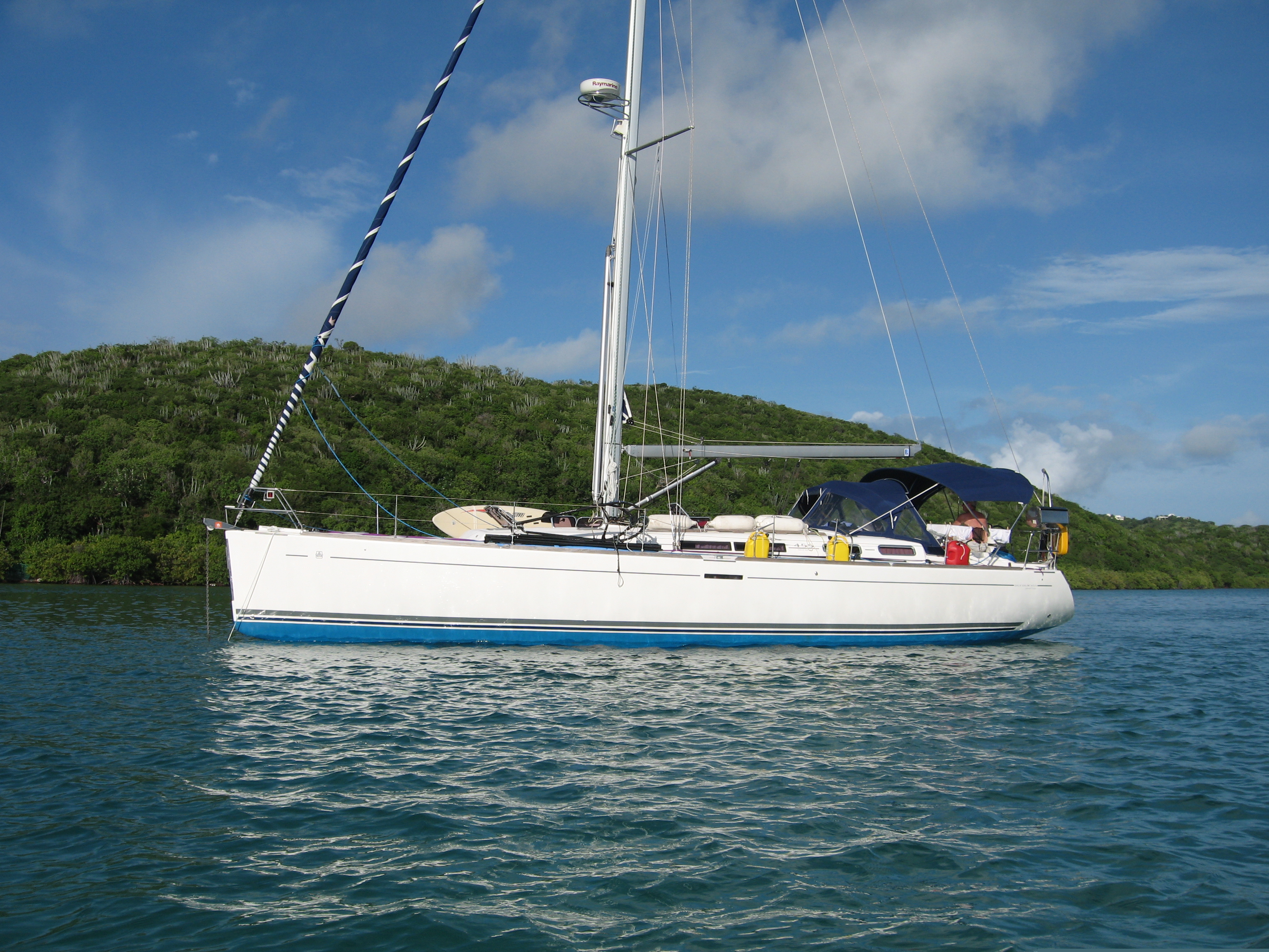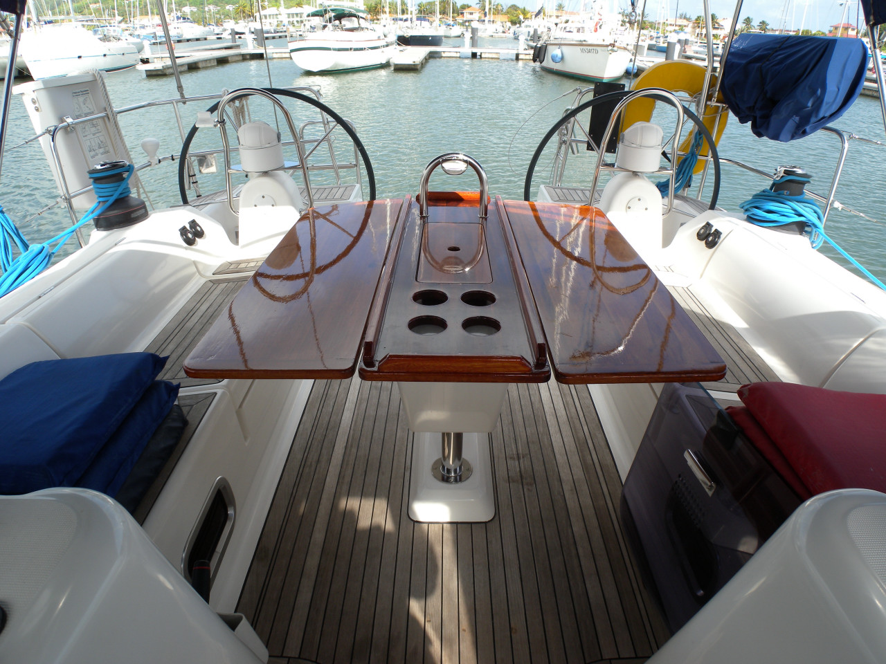 | Outside | Biminitop, Cockpittisch, Delta-Anker, elektr. Ankerwinsch, elektr. Genuawinsch, elektr. Großwinsch, Faltpropeller, Fender, Festmacherleinen, Heckdusche, Sprayhood |