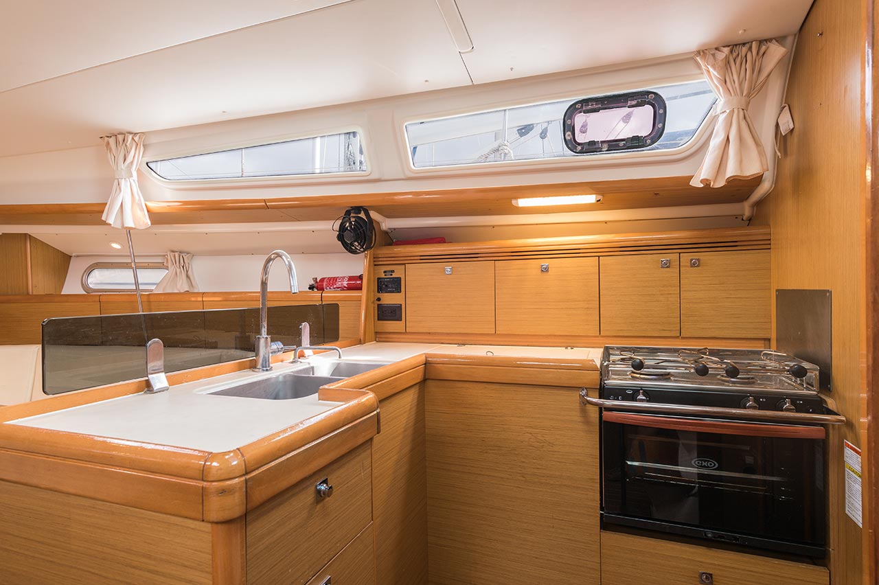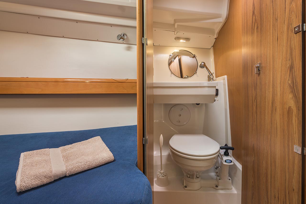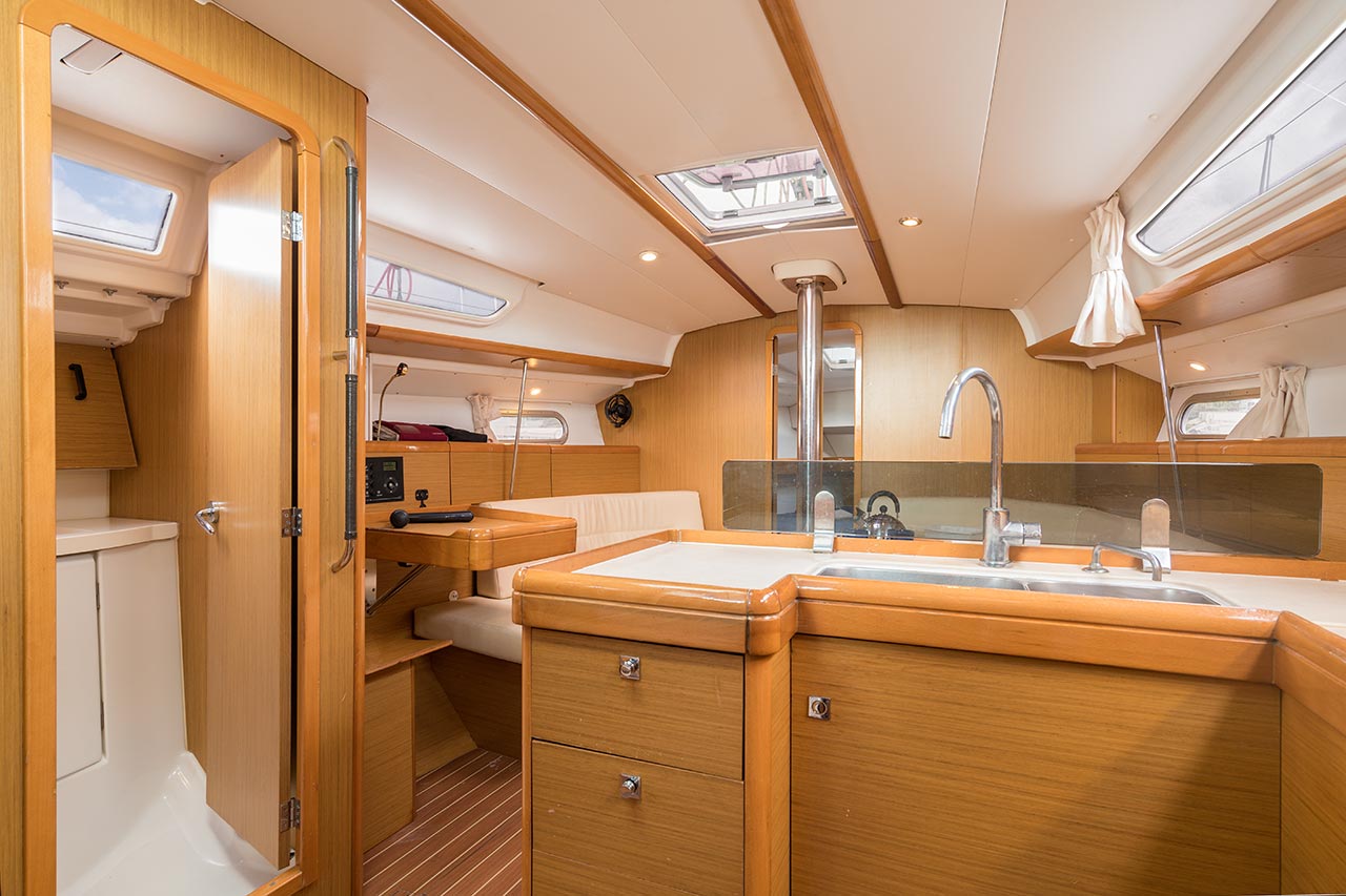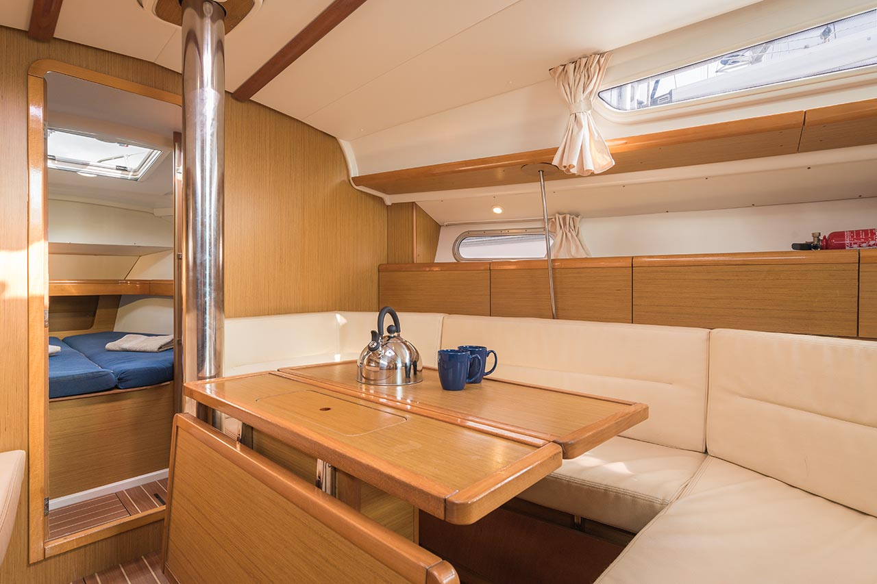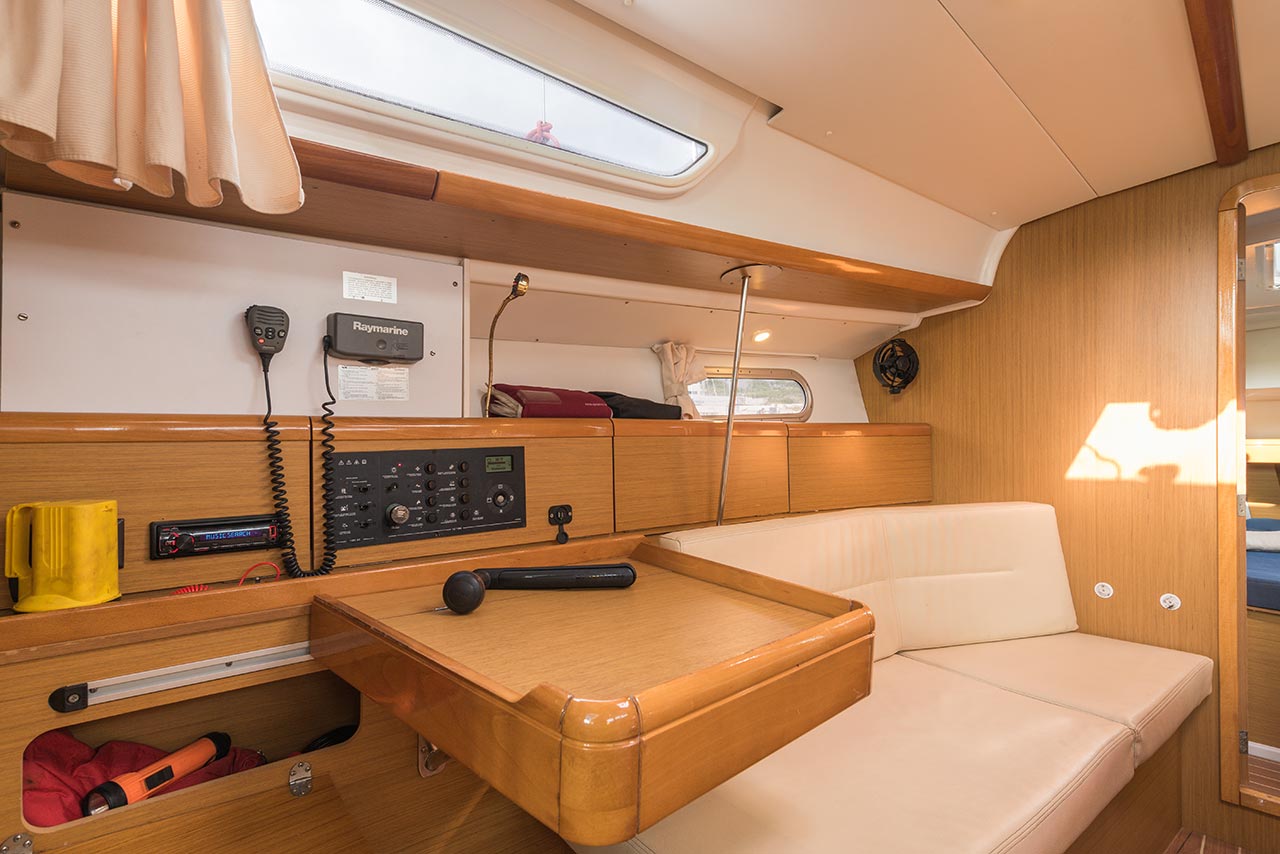 | Navigation | Fernglas, GPS mit Kartenplotter, Handpeilkompass, Seekarten, Tridata (Log, Echolot, Windm.) |