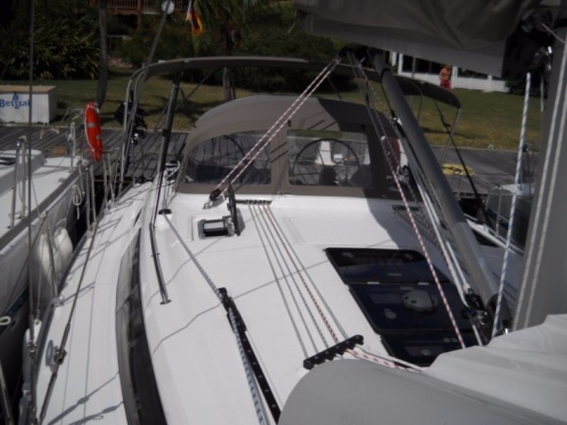 | Outside | Biminitop, Cockpitlautsprecher, Cockpitpolster, Cockpittisch, elektr. Ankerwinsch, Heckdusche, Sprayhood, Teak im Cockpit, Windex |