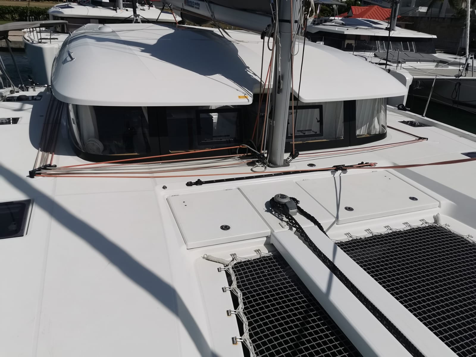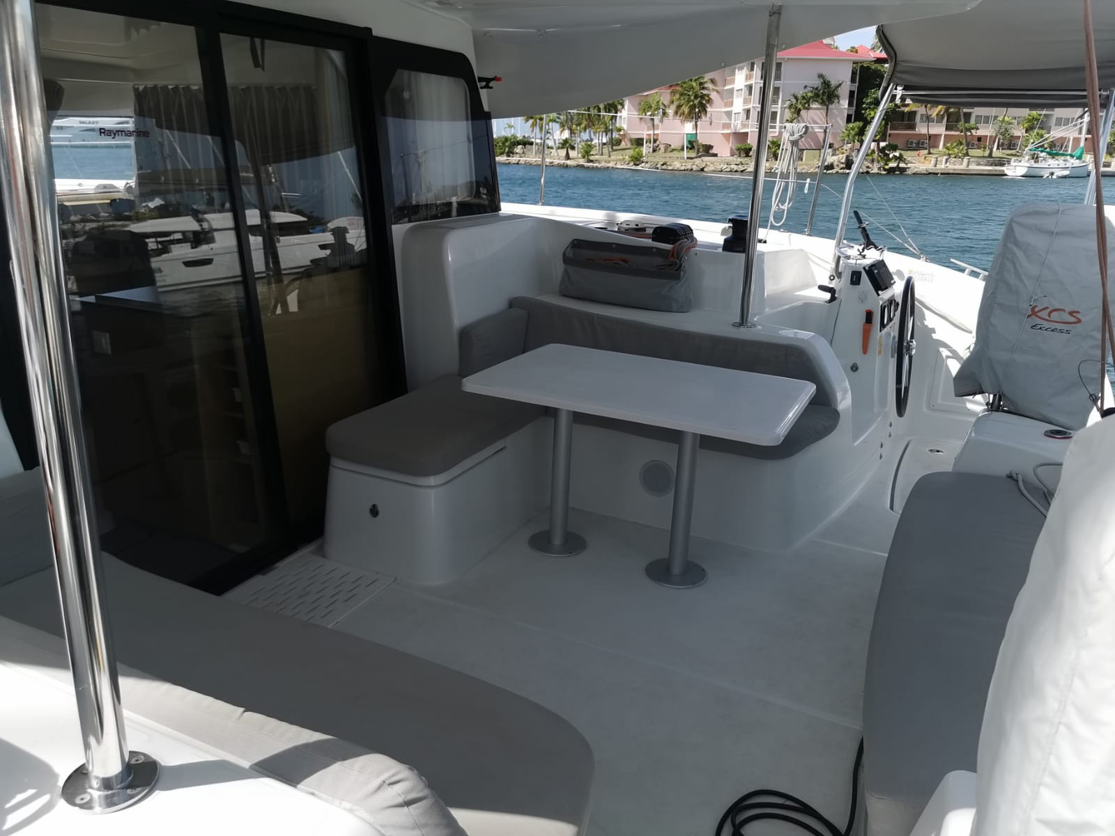 | Outside | Anker mit Kette, Badeplattform, Biminitop, Cockpitdusche, Cockpitlautsprecher, Cockpitpolster, Deckbürste, elektr. Ankerwinsch, Fender, Kunststoff-Eimer (Pütz), Solaranlage, Sprayhood |