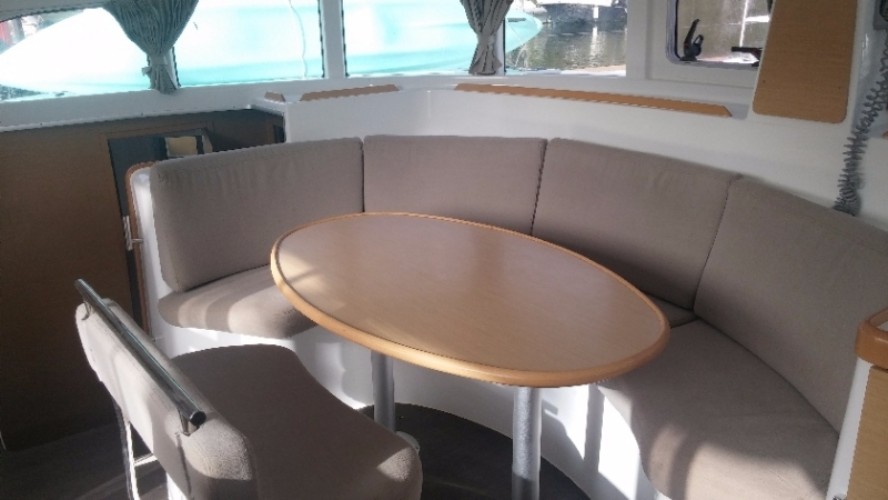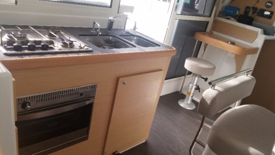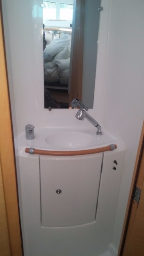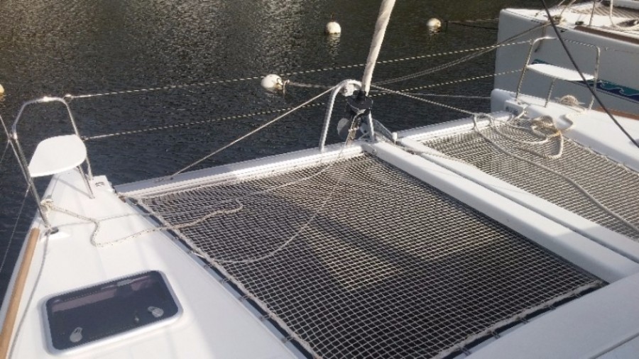 | Outside | Badeleiter, Biminitop, Cockpitlautsprecher, Cockpitpolster, Cockpittisch mit Eisbox, Davits, elektr. Ankerwinsch, elektr. Winsch, Heckdusche, Solaranlage, Windex |