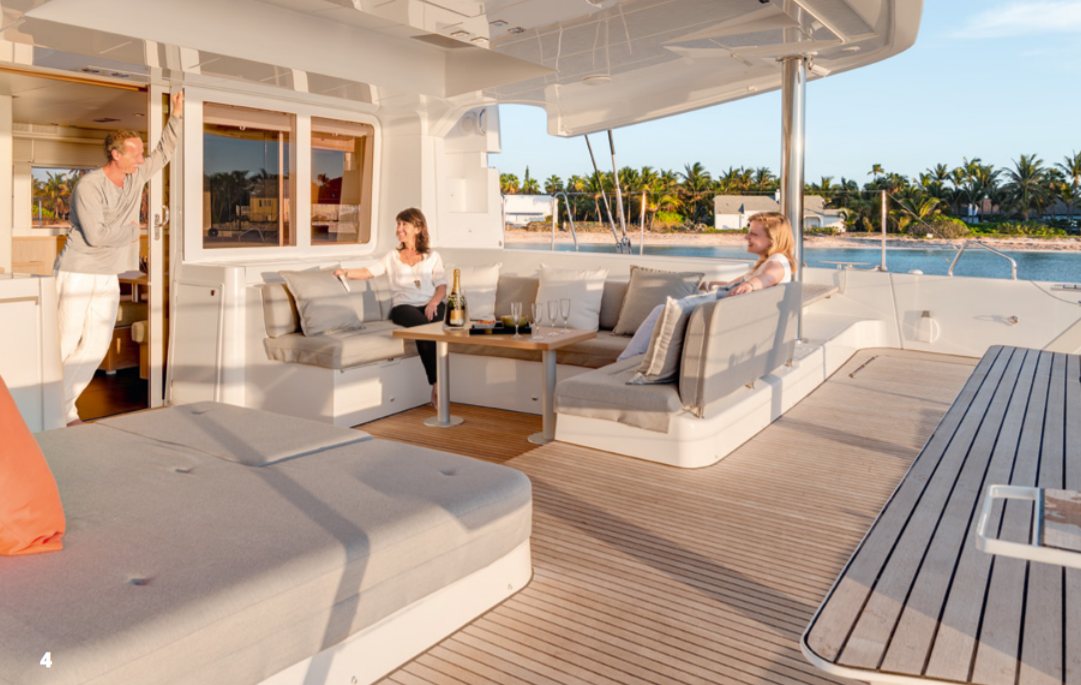 | Outside | Badeleiter, Biminitop, Cockpitdusche, Cockpitkühlschrank, Cockpitlautsprecher, Cockpitpolster, Cockpittisch, Davits, elektr. Ankerwinsch, elektr. Winsch, Flybridge, Kühlschrank auf Flybridge, Selbstholende Winschen |