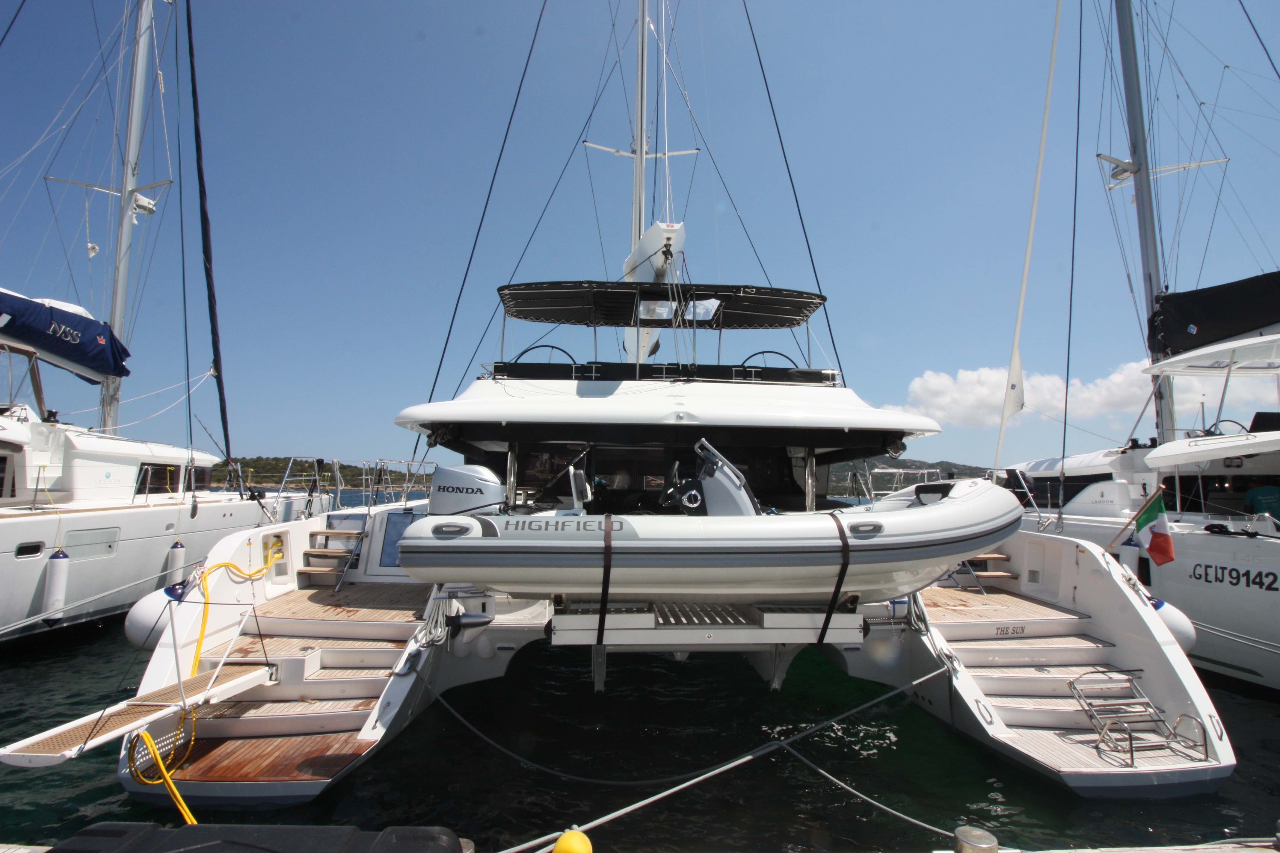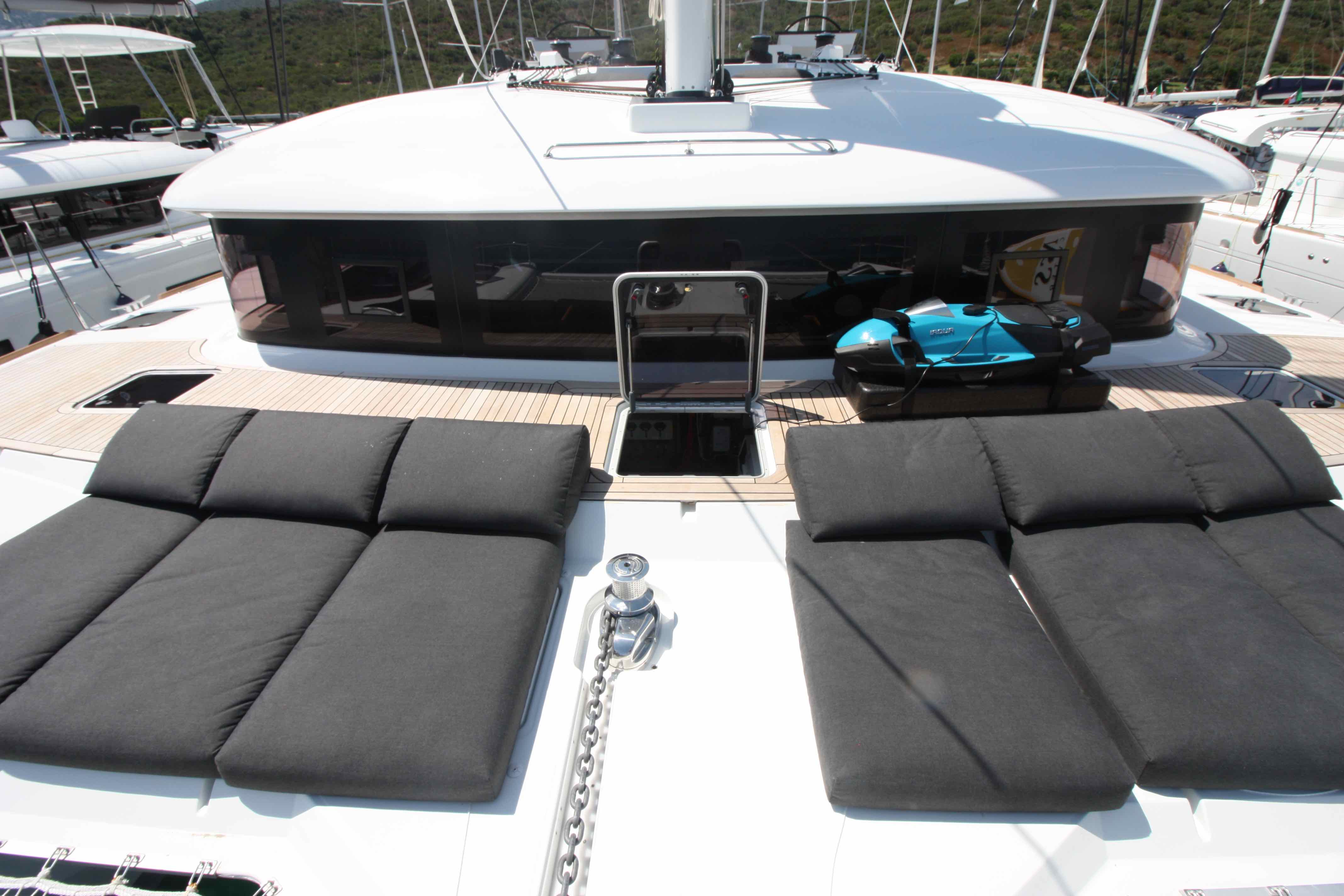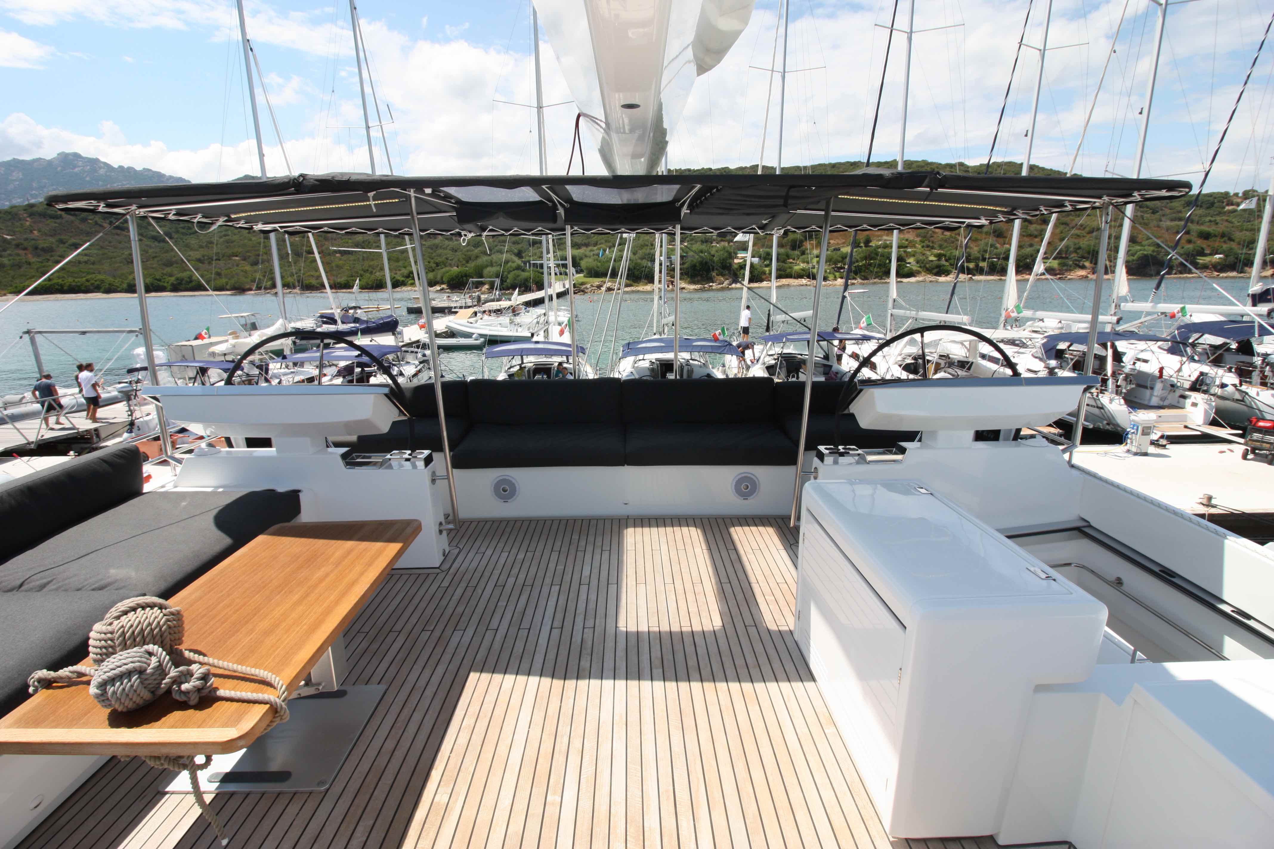 Outside Biminitop, Cockpitdusche, Cockpitlautsprecher, Cockpitpolster, Deckpolster, elektr. Ankerwinsch, Grill, Schnorchelausrüstung, Sprayhood, Teak im Cockpit, Tenderlift