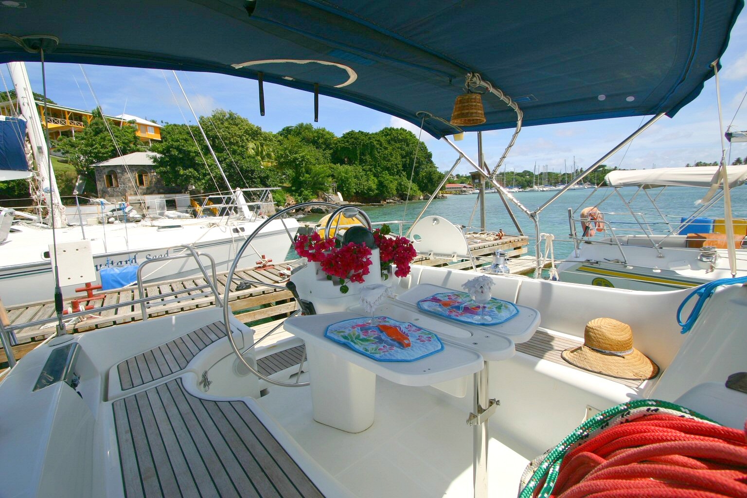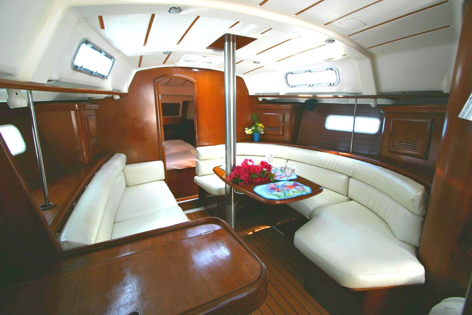 | Outside | Außendusche, Badeplattform, Biminitop, Bootshaken, Cockpitlautsprecher, Cockpitleuchte, Cockpitpolster, Cockpittisch, Deckbürste, elektr. Ankerwinsch, Fender, Festmacherleinen, Grill |