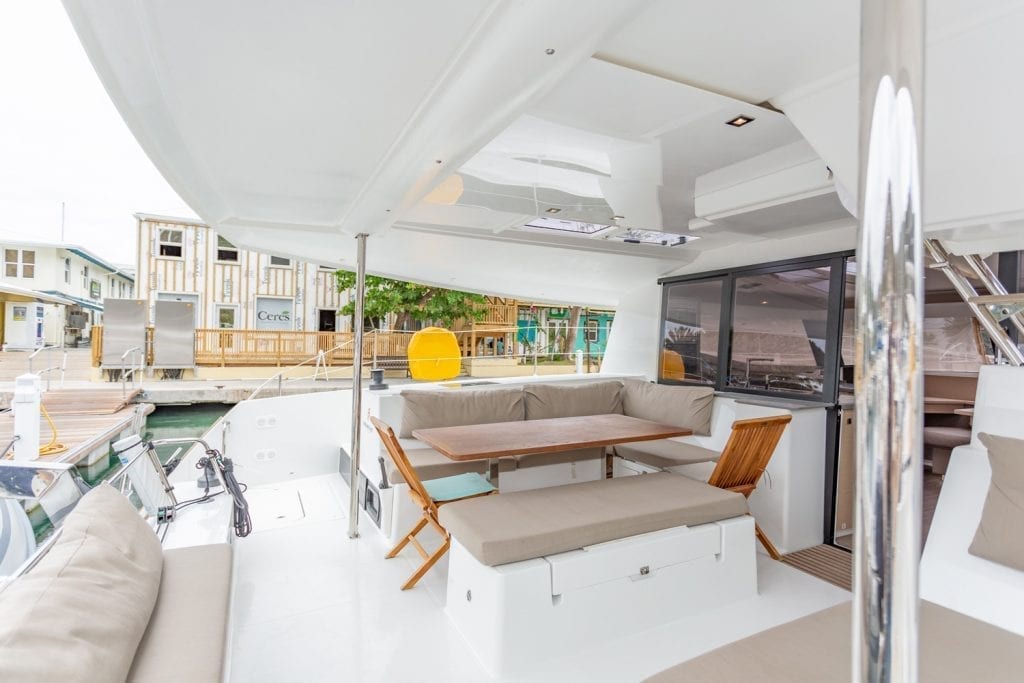 | Outside | Anker mit Kette, Bootshaken, Cockpitleuchte, Cockpitpolster, Deckbürste, Fender, Festmacherleinen, Grill, Kunststoff-Eimer (Pütz), Schnorchelausrüstung, Solaranlage, Vorhängeschloss, Wantenschneider, Winschen |