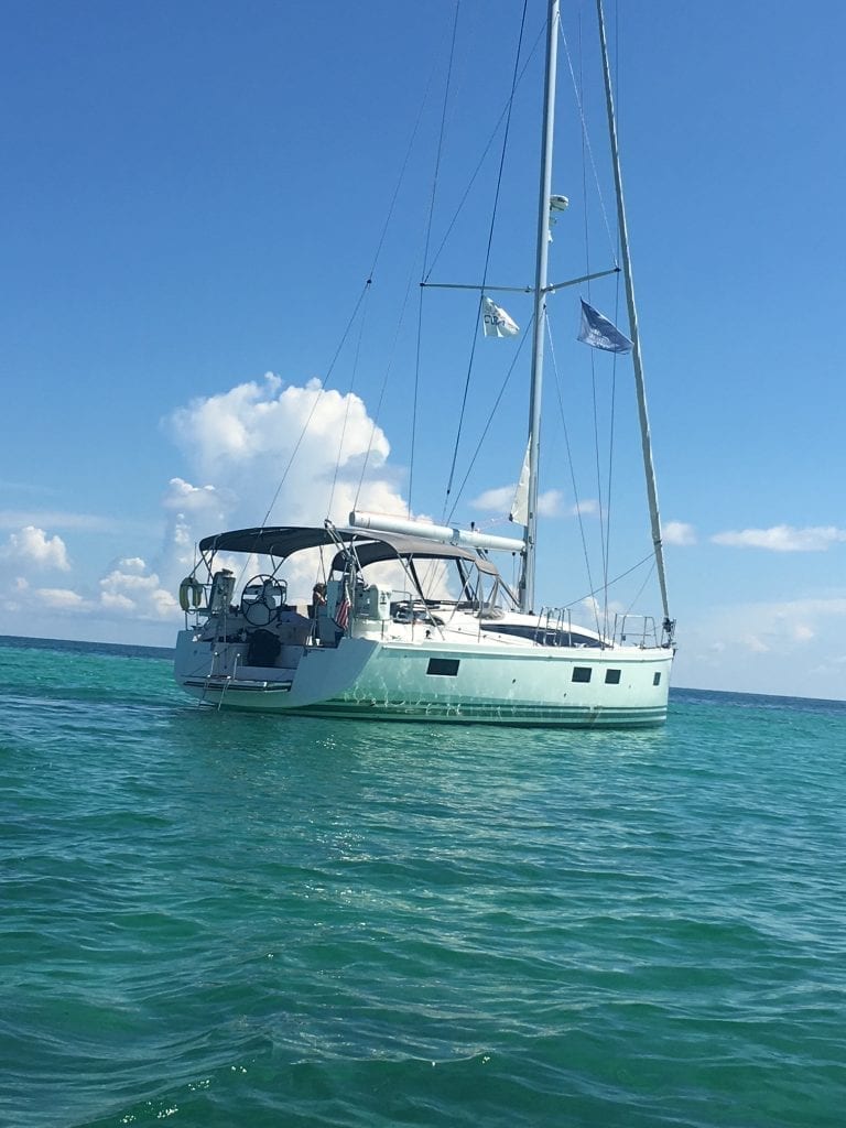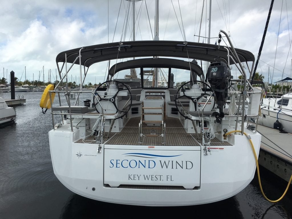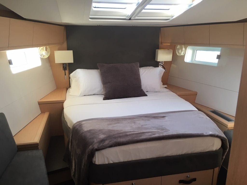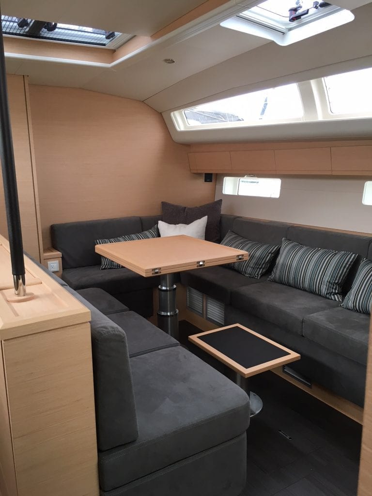 | Outside | Anker mit Kette, Bootshaken, Cockpitleuchte, Cockpitpolster, Deckbürste, elektr. Winsch, Fender, Festmacherleinen, Grill, Kunststoff-Eimer (Pütz), Schnorchelausrüstung, Vorhängeschloss, Wantenschneider, Winschen |
